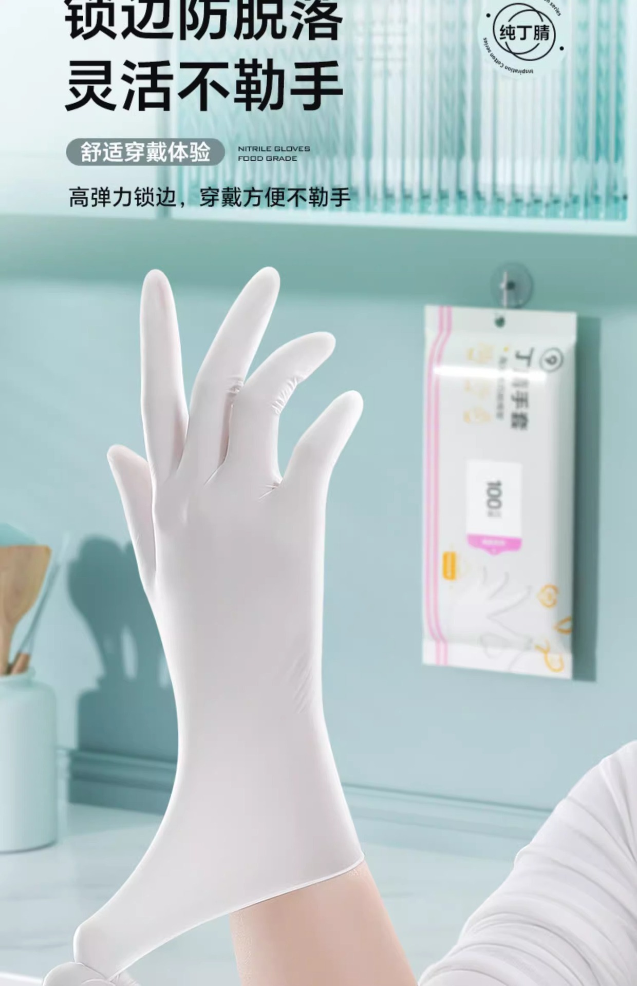 일회용 니트릴 장갑 식품 등급 내구성 여성 가정용 고무 라텍스 주방 청소 접시 세척 방수 특수스토어 가기