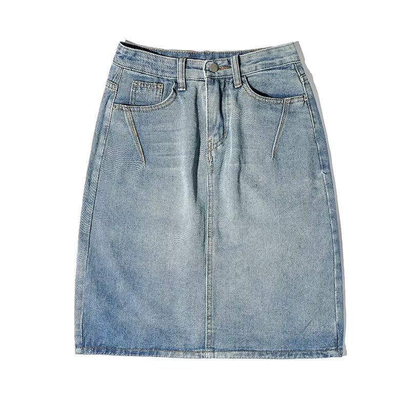 데님 스커트 여성의 봄과 여름 2024 새로운 높은 허리 슬리밍 캐주얼 중간 길이 분할 데님 스커트