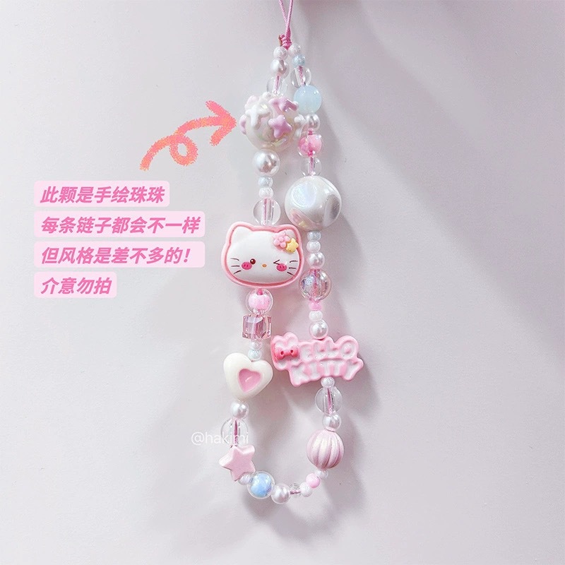 원래 비즈 키티 고양이 핑크 산리오 손으로 그린 귀여운 휴대 전화 체인 ccd 안티 손실 카메라 로프 매달려 체인 장식