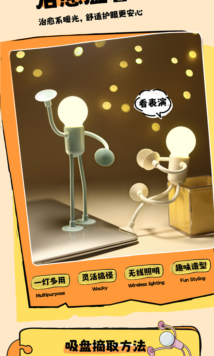 새로운 국경 선물 전구 창조적 인 재미있는 모양 빨판 야간 조명 선수 침실 분위기 장식품스토어 가기