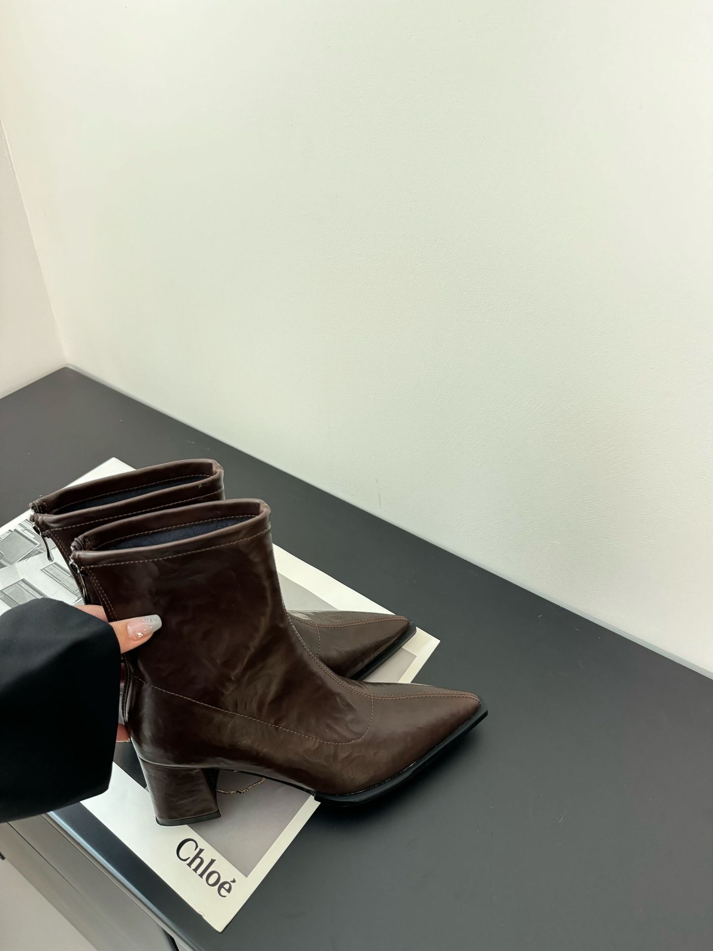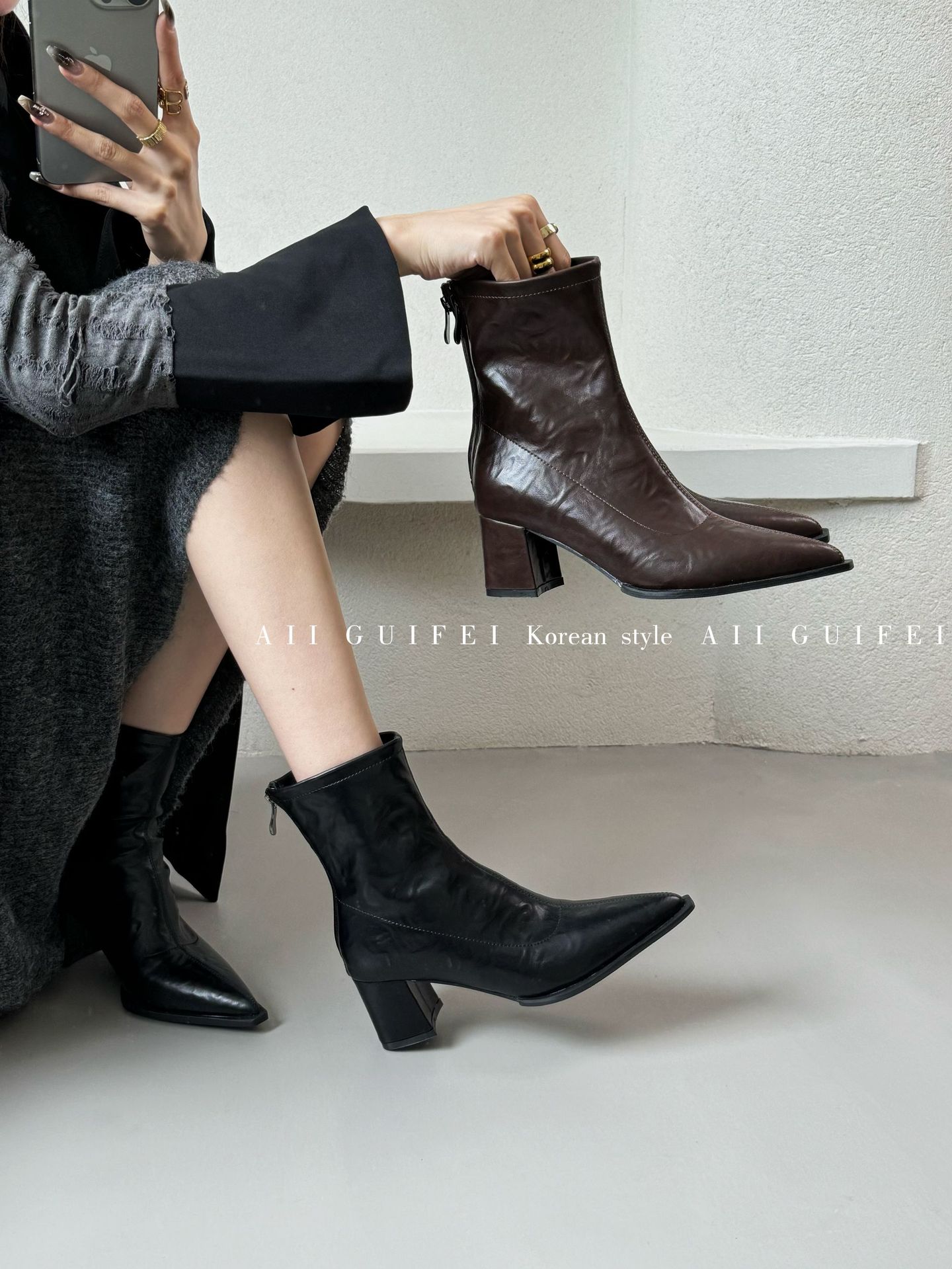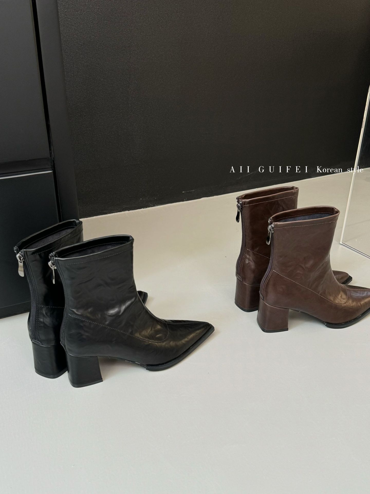 영국 스타일 뾰족코 개성 패션 부츠, 두꺼운 낮은 굽 숏부츠, 여성용 2025년 신상 가을 겨울 다용도 뒷지퍼 바이커 부츠스토어 가기