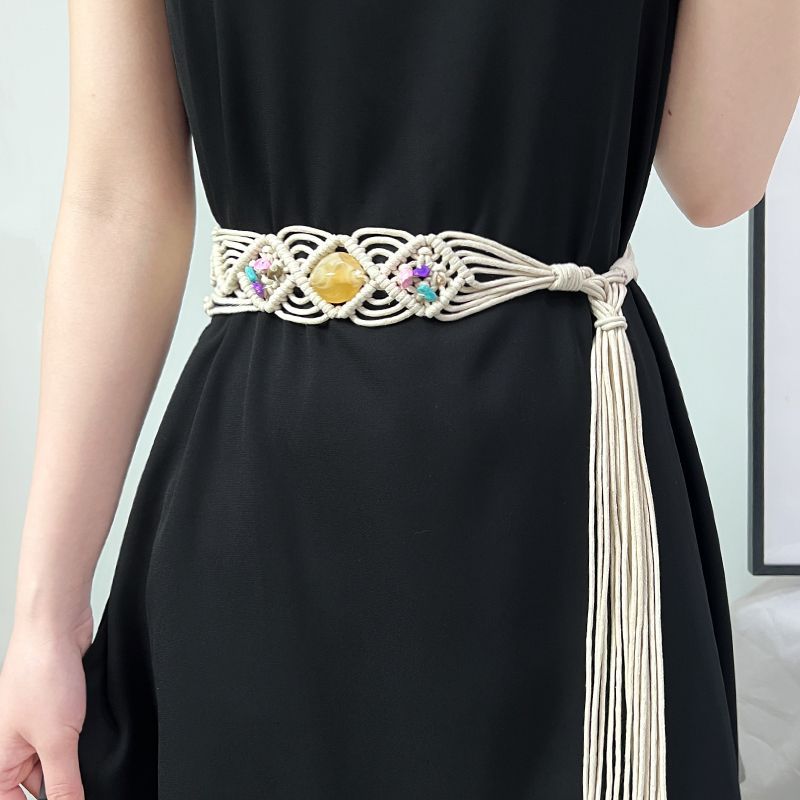 새로운 민족 스타일 왁스 로프 짠 수제 벨트 보헤미안 스타일 허리 체인 여성 원피스 액세서리 벨트