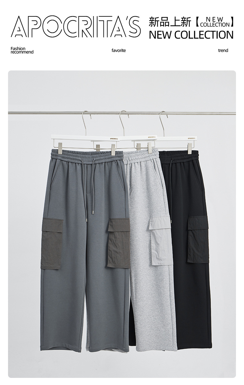 APO 남성복 | 가을/겨울 작업복 바지 남성용 느슨하게 넓은 스트레이트 작업복 캐주얼 바지 남성 니트 캐주얼 바지스토어 가기