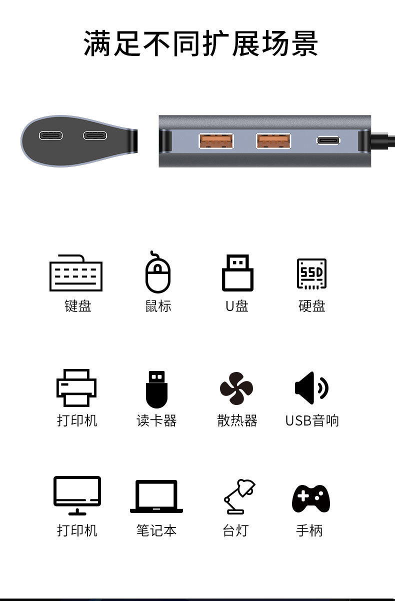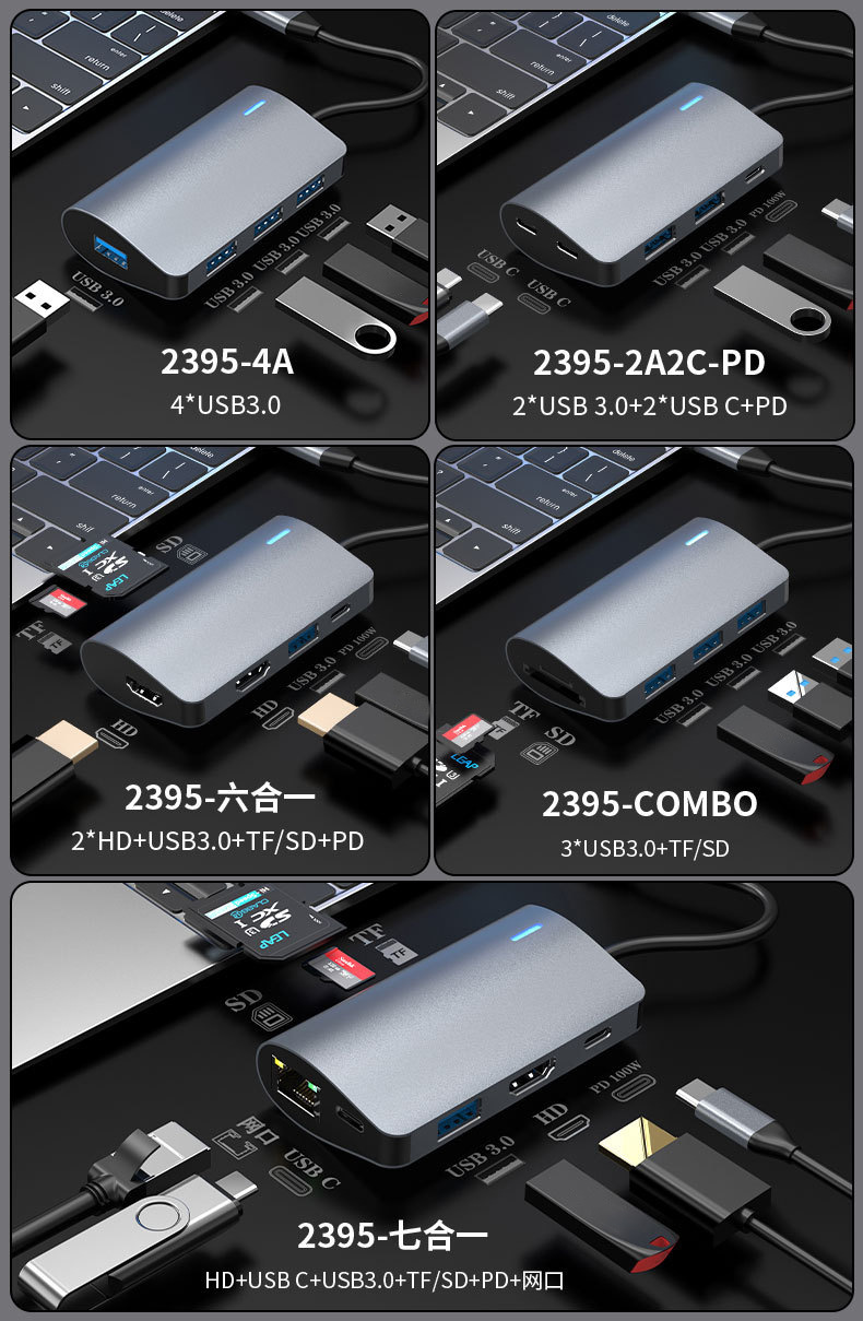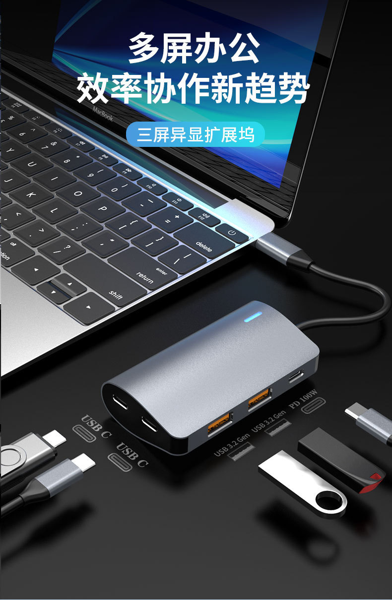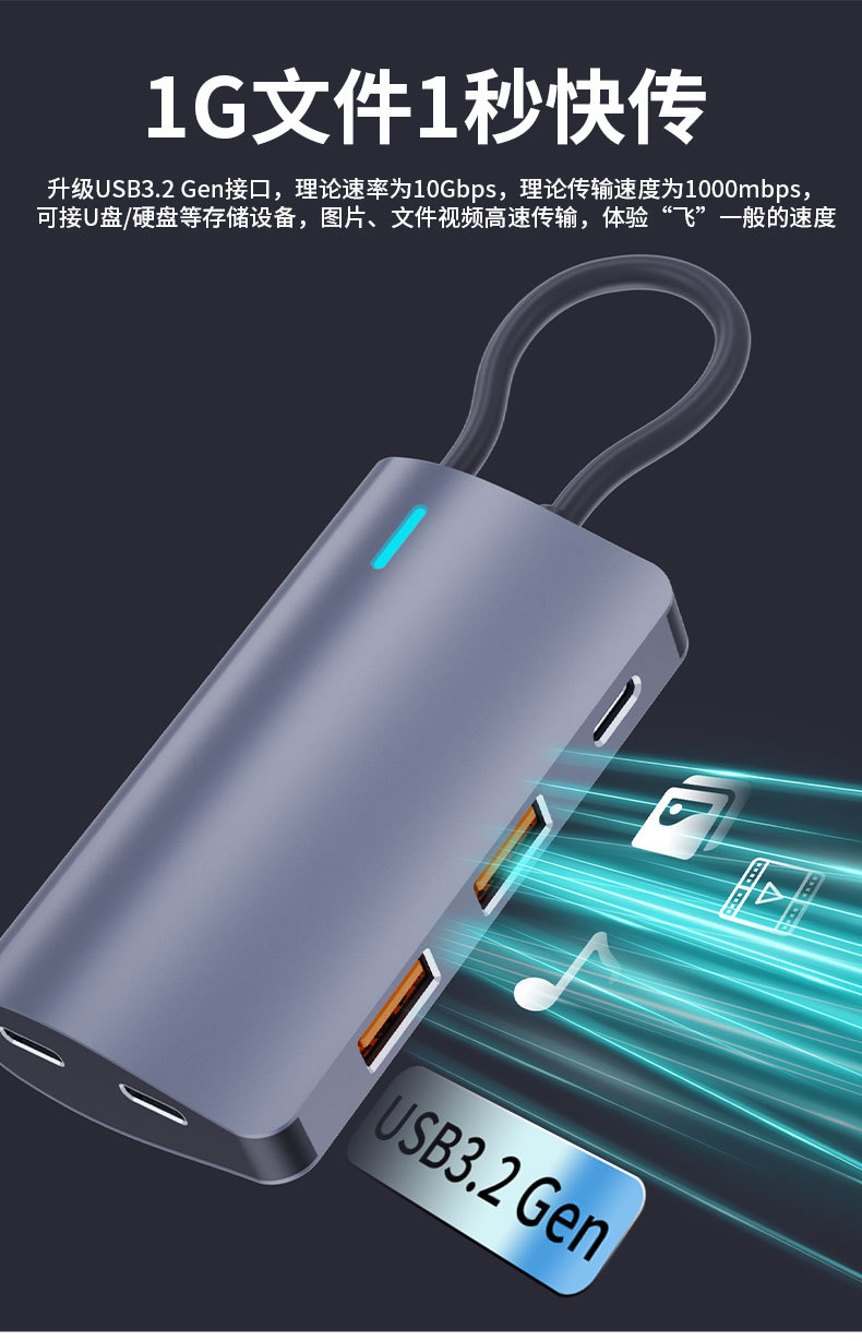 10Gtypec 확장 도크 2A2C 노트북 태블릿 PD 충전 usb3.2 허브 스플리터 컴퓨터 컨버터스토어 가기