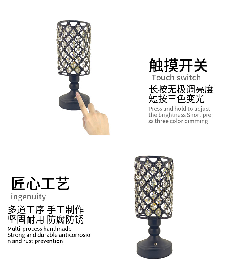국경을 넘는 테이블 램프, 모던하고 심플한 장식용 침대 옆 램프, 고급스러운 철제 테이블 램프, 터치 조광 침실 야간등, 눈 보호