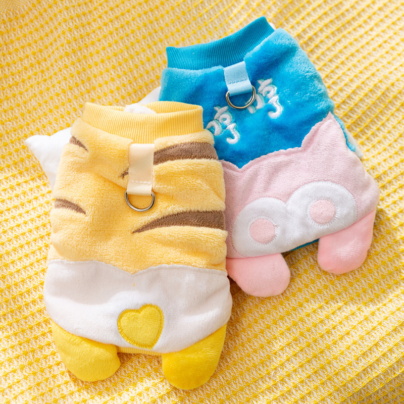 [24 년 새 의류 예약 구매] 개 옷 만화 귀여운 웃긴 두 다리 고양이 벨벳 애완 동물 옷