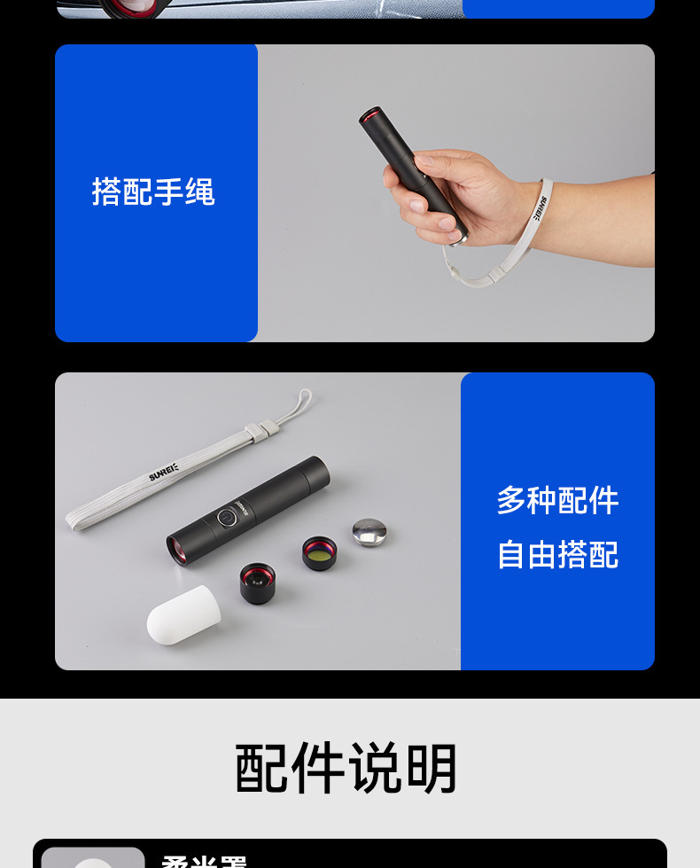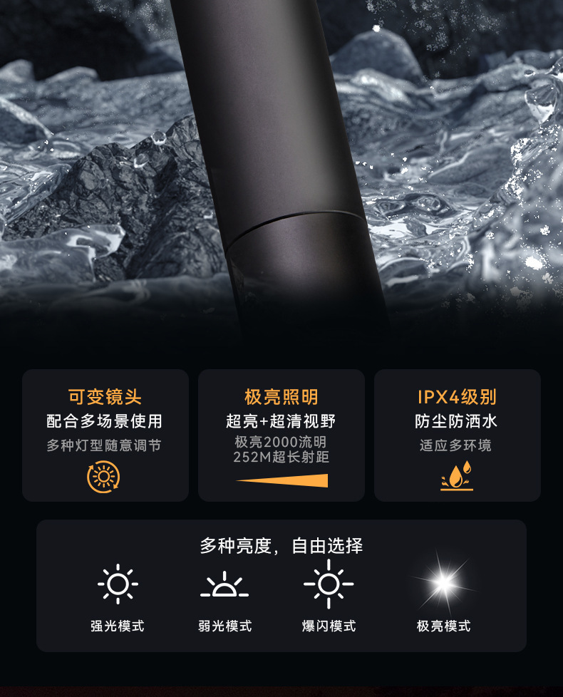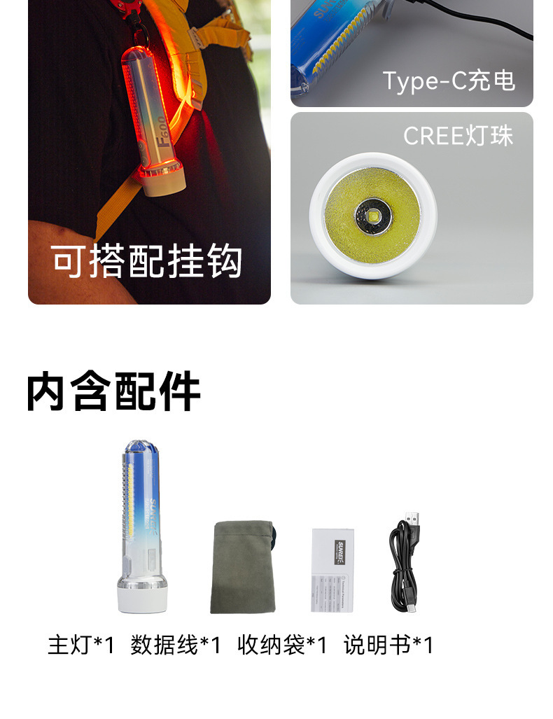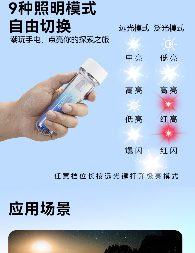Shanlix 밝은 다기능 손전등 충전식 슈퍼 밝은 야외 작은 휴대용 스포트라이트 작업 조명