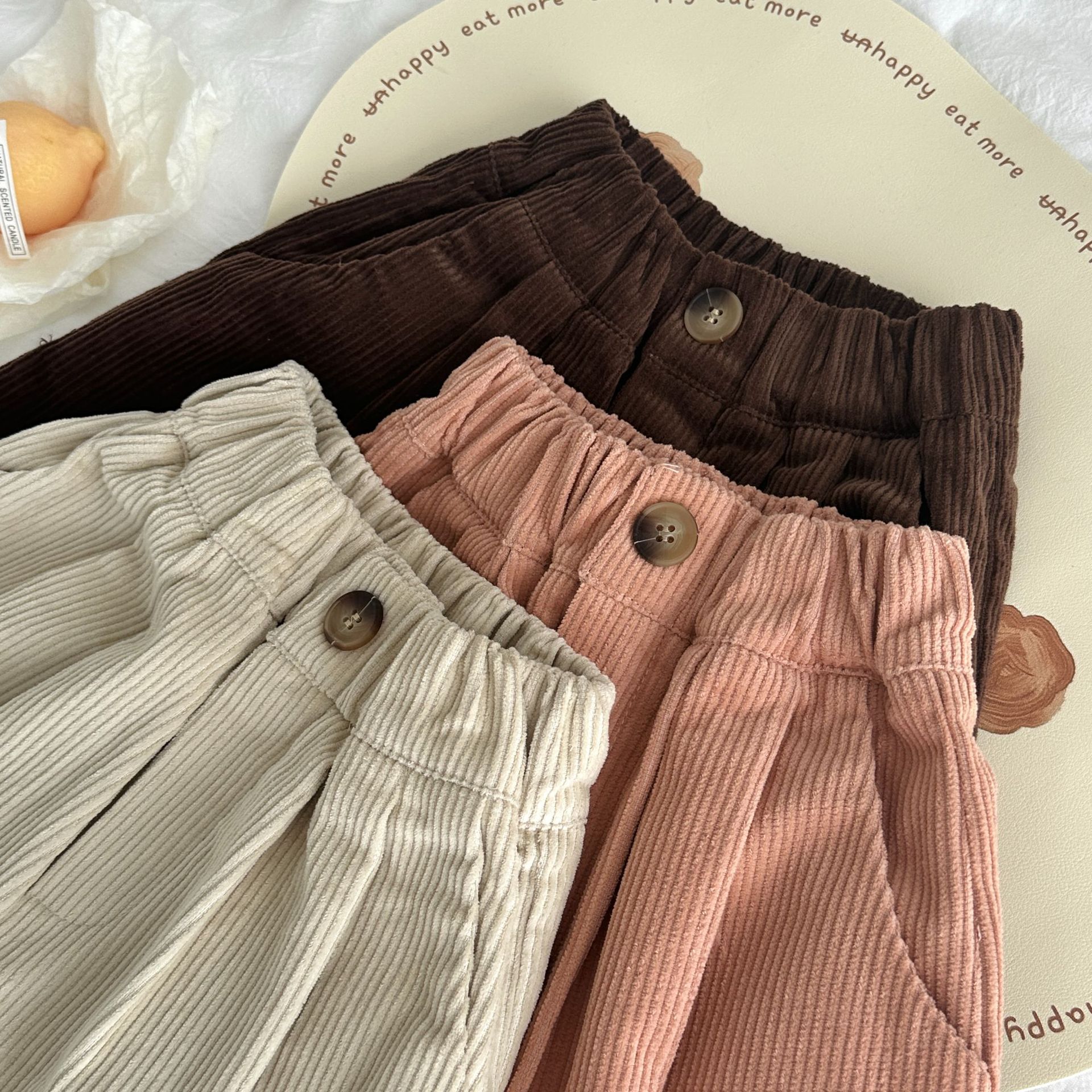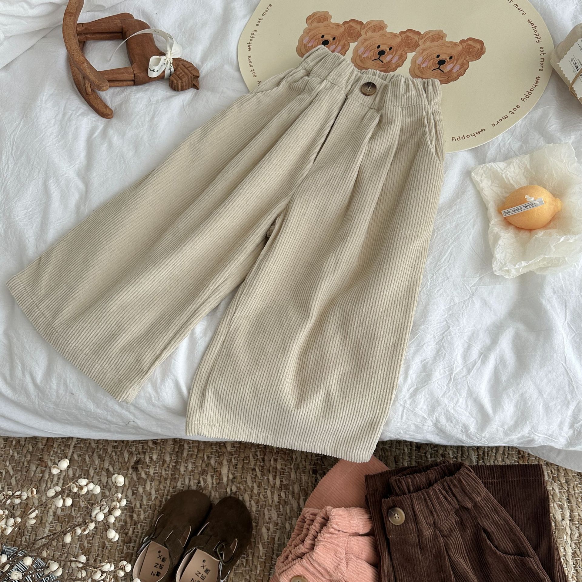 아동 바지 2026 가을 남아 여아 한국 스타일 단색 캐주얼 루즈핏 스트레이트 팬츠 아동용 만능 와이드 레그 롱 팬츠 코듀로이스토어 가기