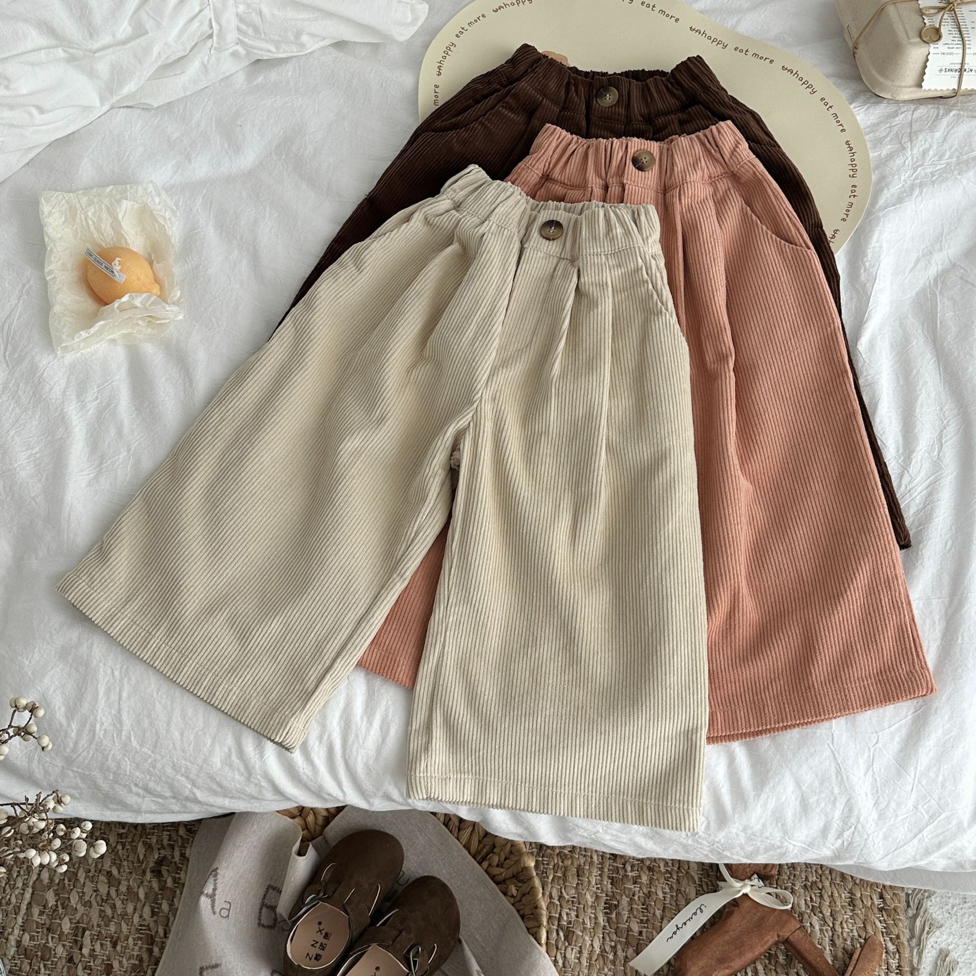 아동 바지 2026 가을 남아 여아 한국 스타일 단색 캐주얼 루즈핏 스트레이트 팬츠 아동용 만능 와이드 레그 롱 팬츠 코듀로이