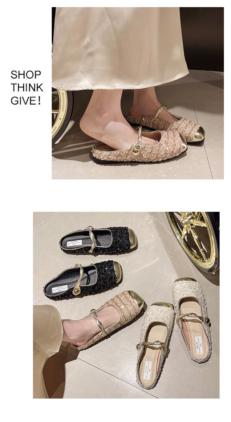 여성을위한 프랑스 스팽글 실버 발가락 반 슬리퍼 도매 봄과 여름 작은 향기 스타일 한국 스타일 메리 제인 신발 여성 신발스토어 가기