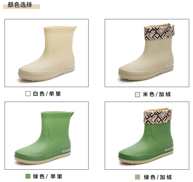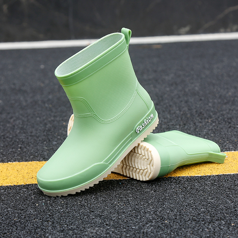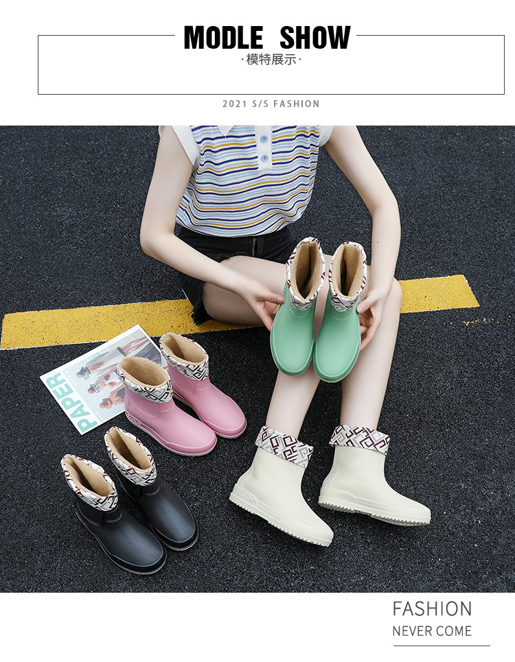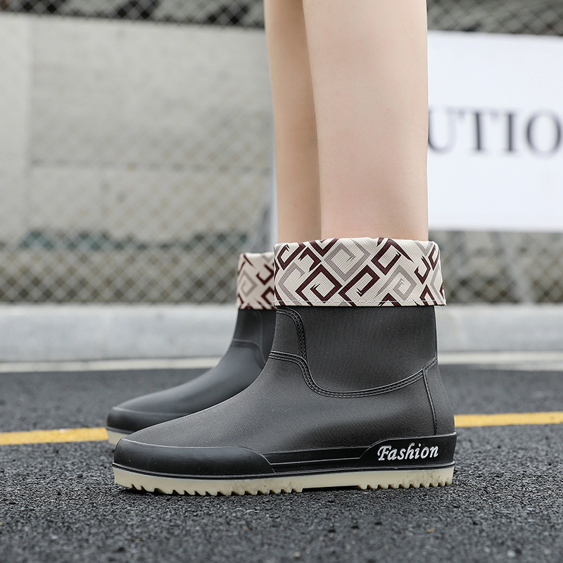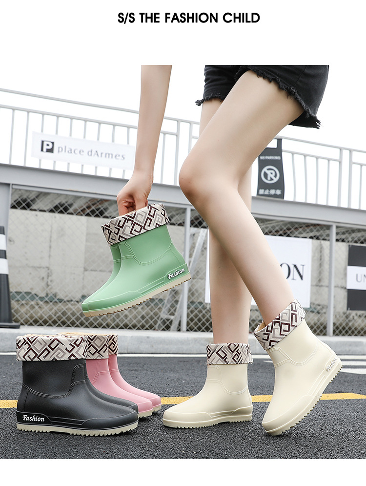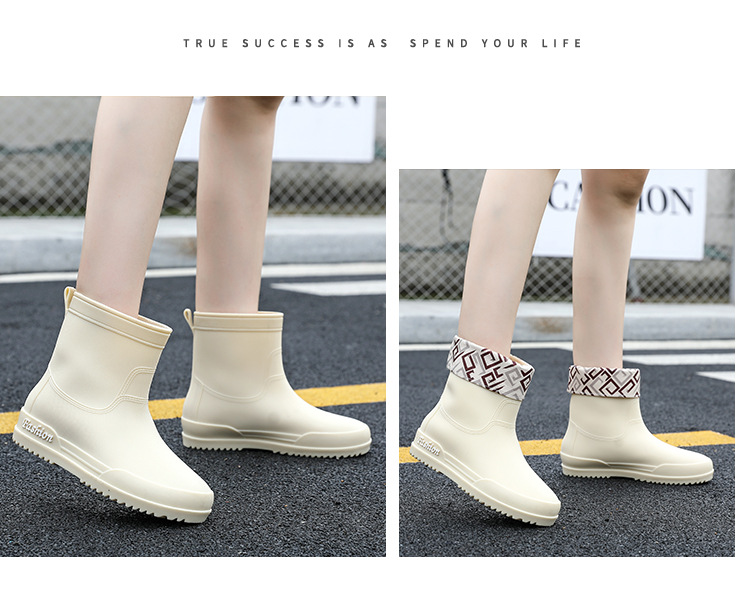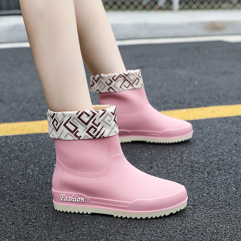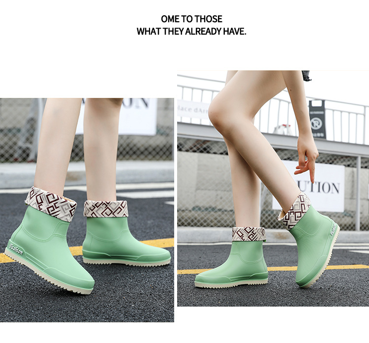 여성용 레인부츠, 중간 길이 여성용 성인 신발, 높은 길이 미끄럼 방지 신발, 작업용 고무신, 여성용 방수 낮은 굽 신발, 탈부착 가능한 솜 안감
