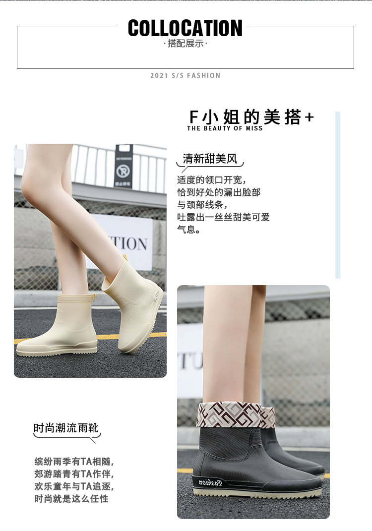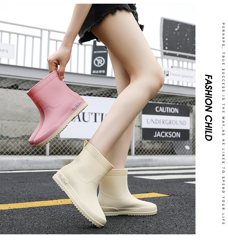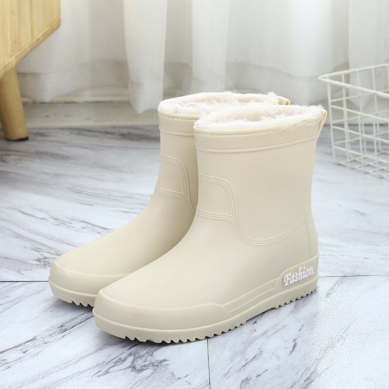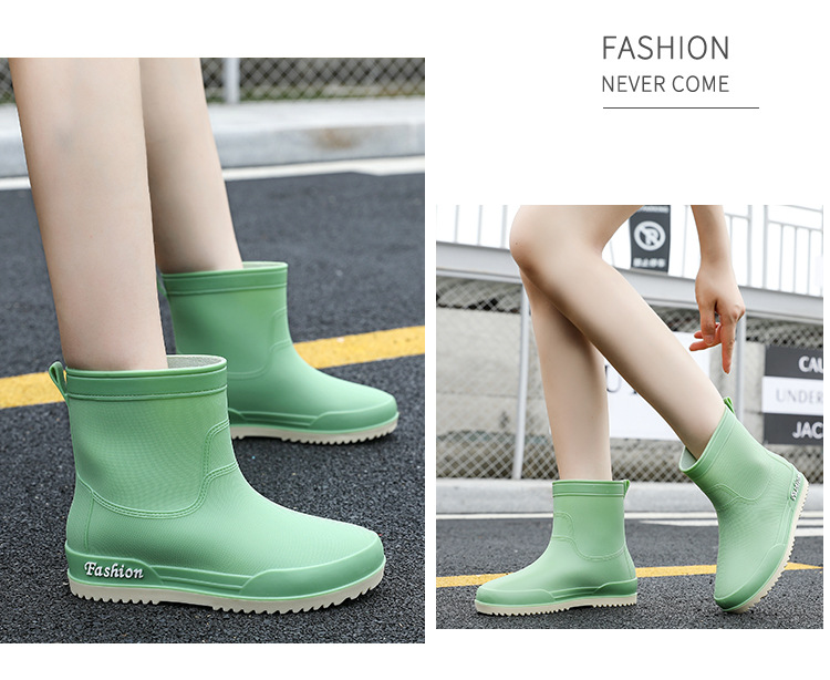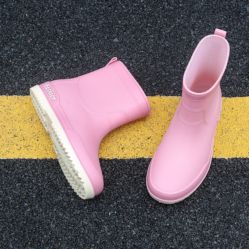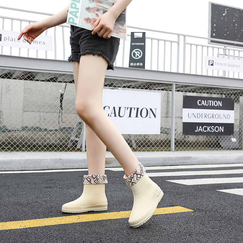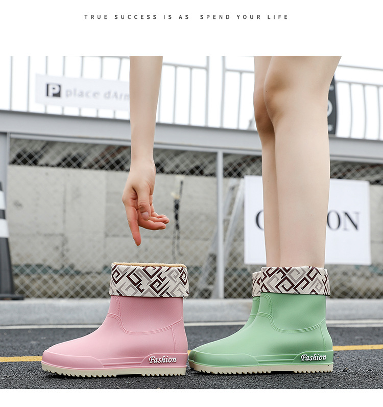 여성용 레인부츠, 중간 길이 여성용 성인 신발, 높은 길이 미끄럼 방지 신발, 작업용 고무신, 여성용 방수 낮은 굽 신발, 탈부착 가능한 솜 안감