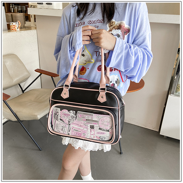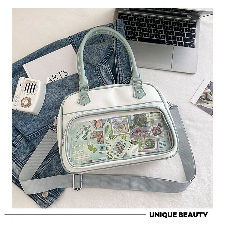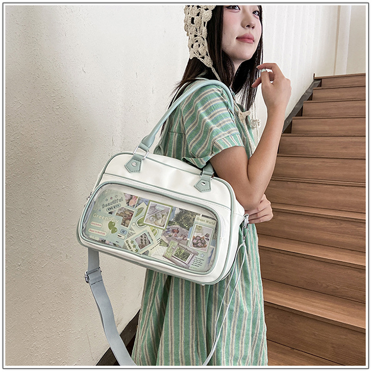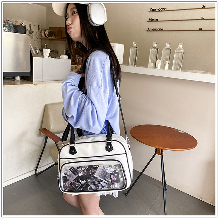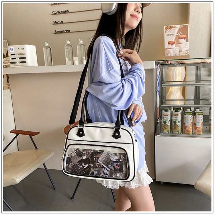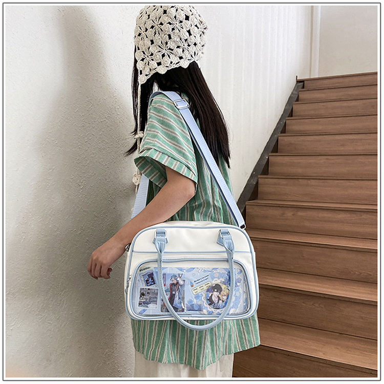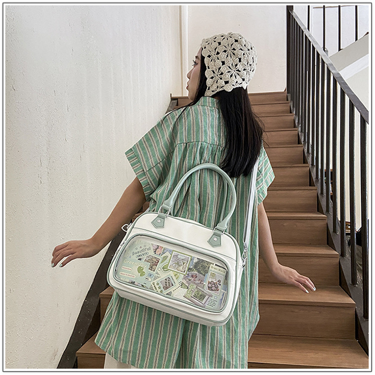 일본 고통스러운 가방 캐주얼 학생 크로스 바디 유니폼 가방 여성 가방 2 차 귀여운 투명 크로스 바디 어깨 핸드백