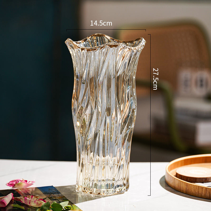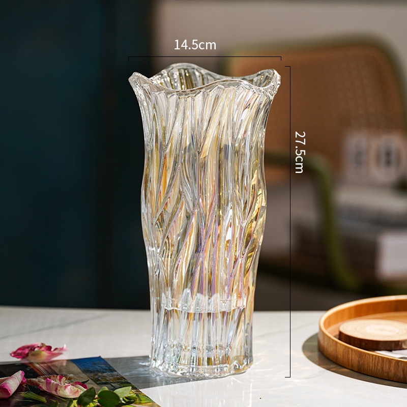 꽃병 장식품 거실 꽃꽂이 유리 투명 물 장미 백합 고급 꽃 빛 고급 틈새 대형 크리스탈