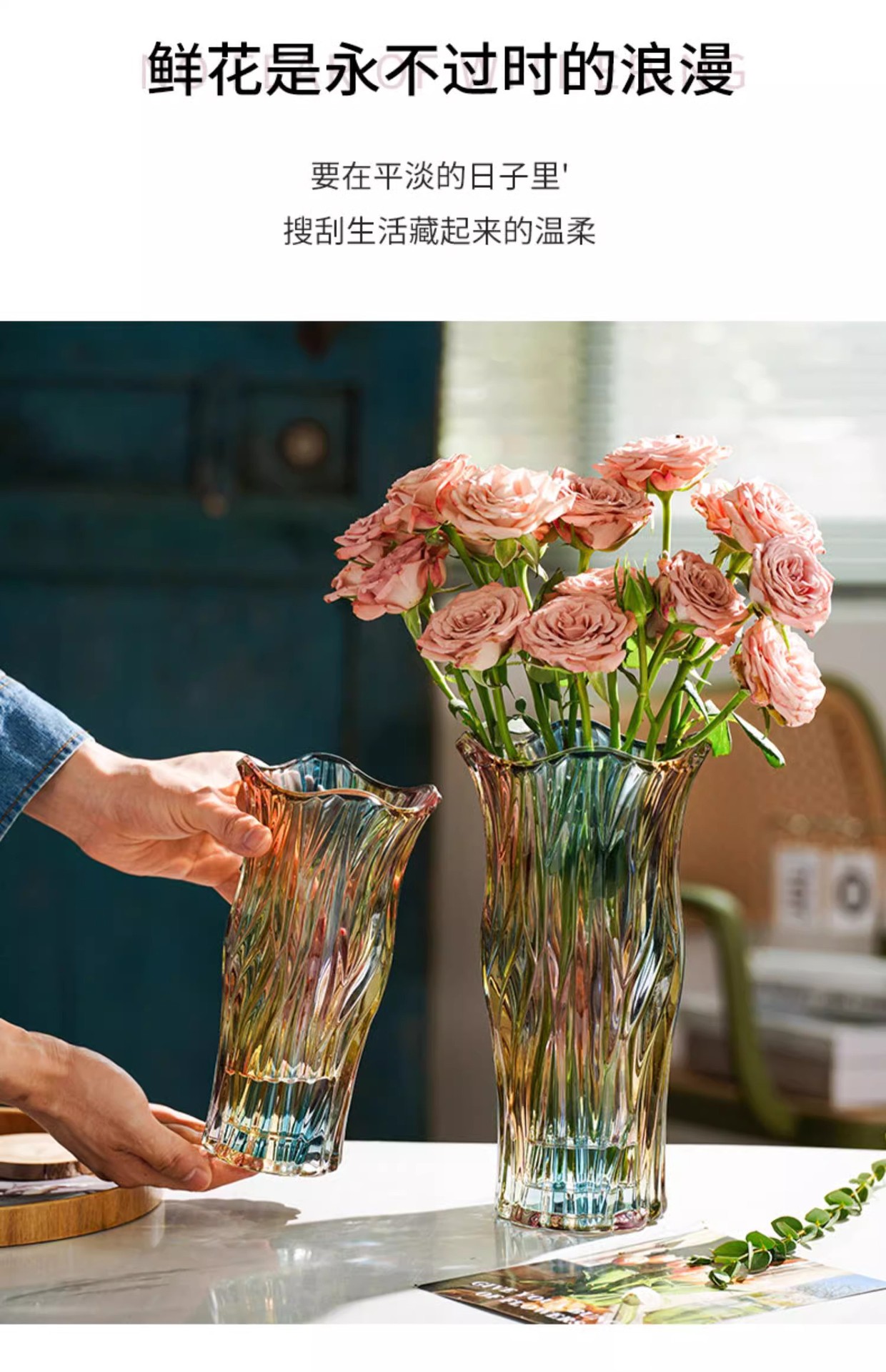 꽃병 장식품 거실 꽃꽂이 유리 투명 물 장미 백합 고급 꽃 빛 고급 틈새 대형 크리스탈스토어 가기