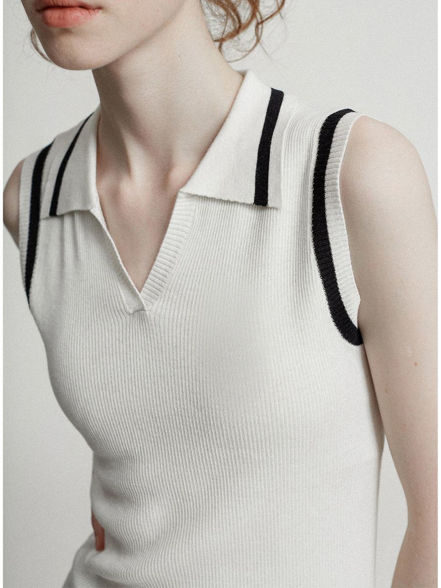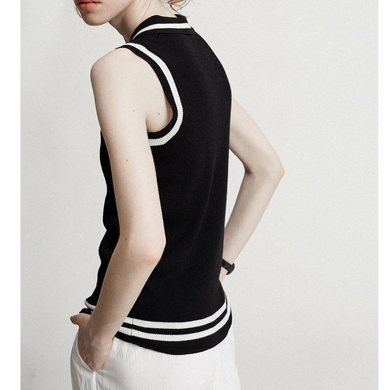 봄과 여름 2 색 니트 스트라이프 콘트라스트 컬러 슬림 민소매 v넥 옷깃 스트레치 조끼 조끼스토어 가기