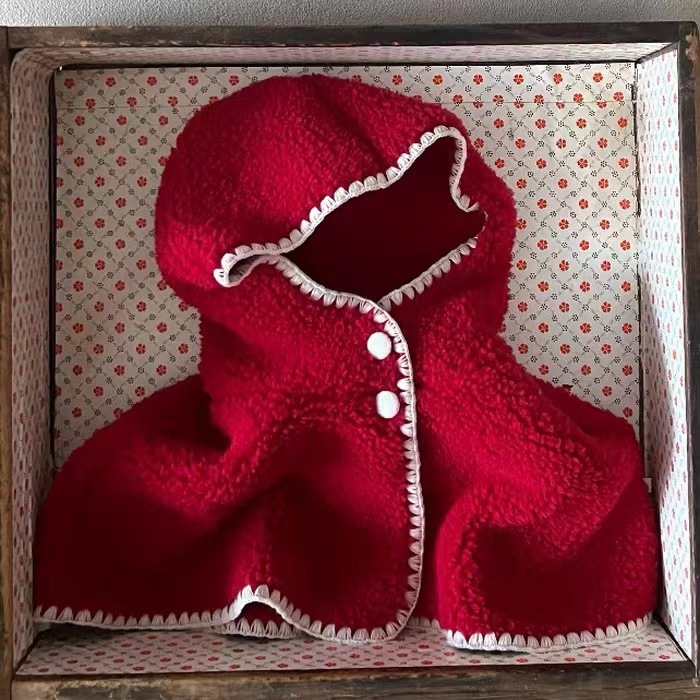 한국식 인스타그램 스타일 가을과 겨울 아기 남자와 여자의 서양식 망토 판초 후드 귀 보호 모자 독특한 기모 방풍 따뜻한
