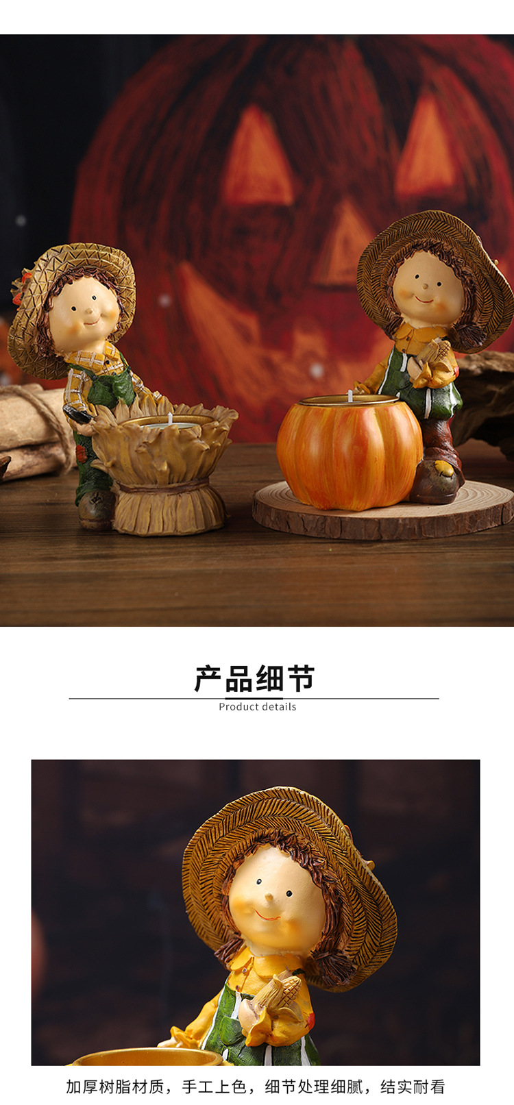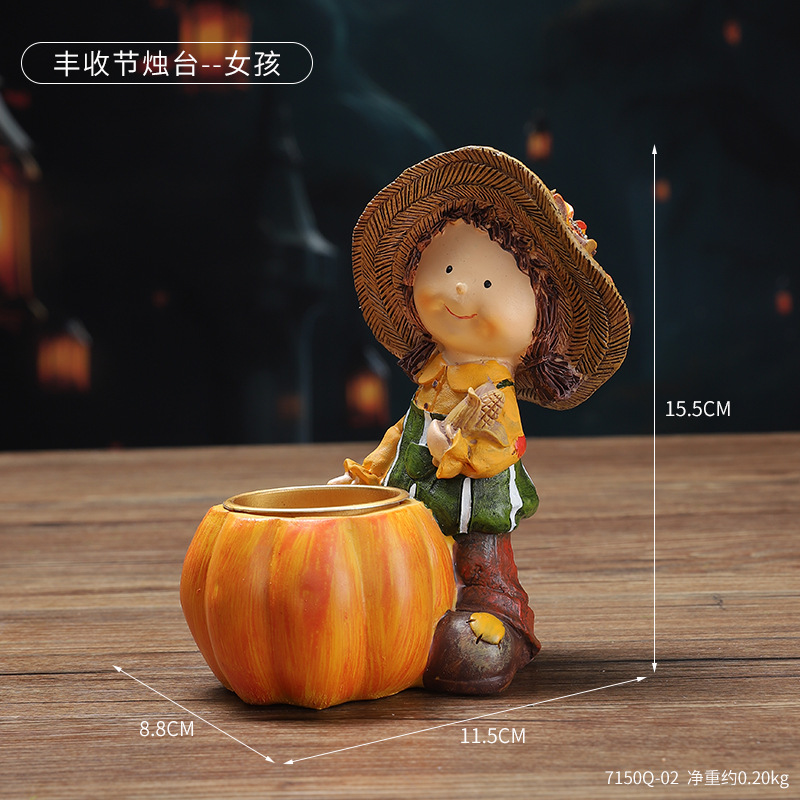 할로윈 호박 장식 촛대 추수 감사절 추수 감사절 축제 소년 소녀 촛대 장식품 휴일 분위기 장식
