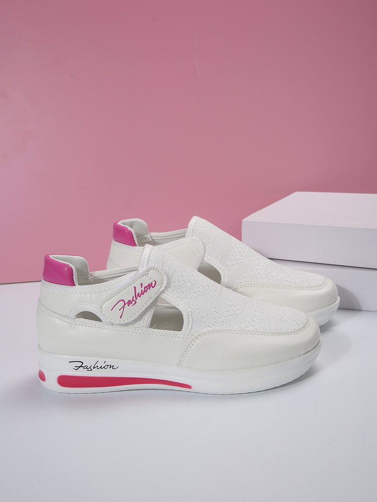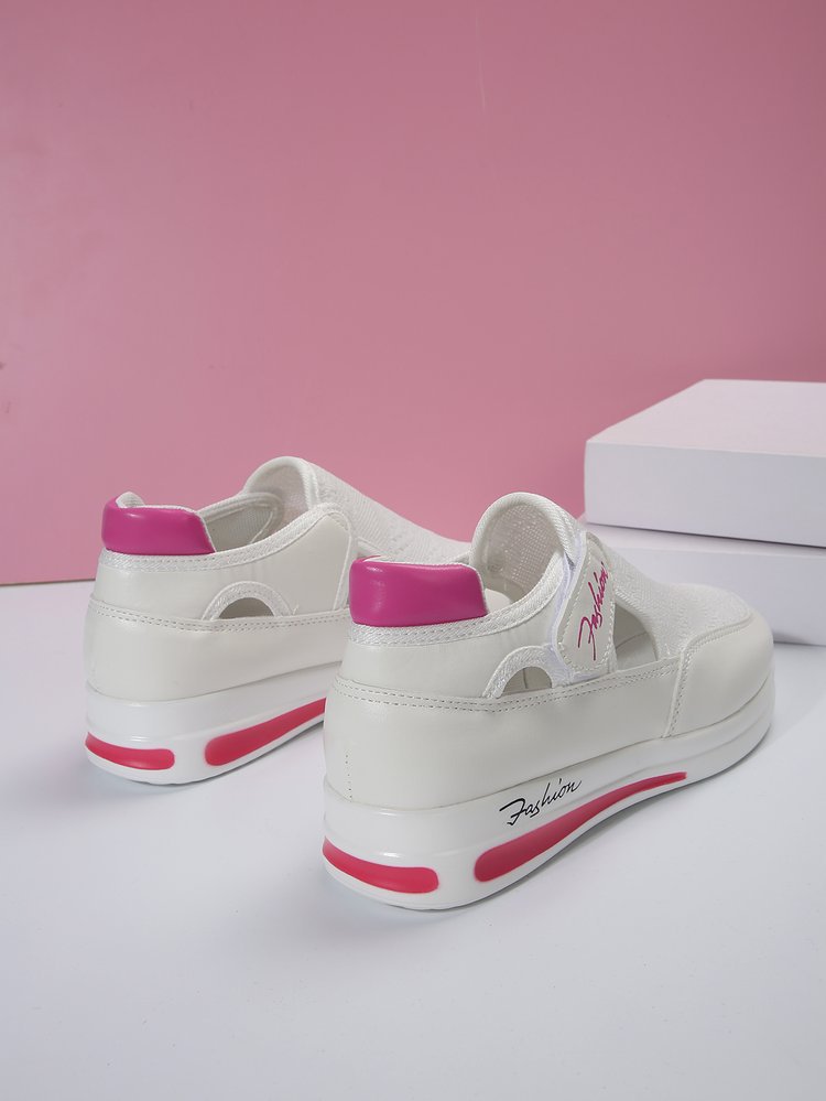 여름 대외 무역 플러스 사이즈 플라이 짠 통기성 캐주얼 싱글 레이어 신발 웨지 힐 두꺼운 밑창 중공 벨크로 라운드 헤드 로우 탑 여성 싱글 레이어 신발
