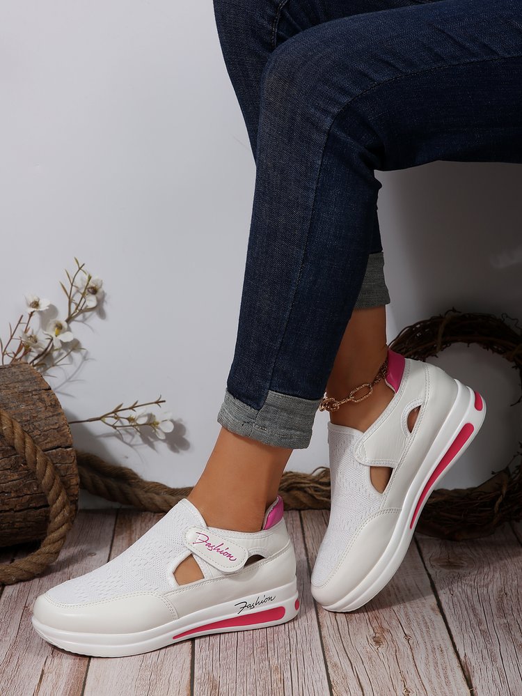 여름 대외 무역 플러스 사이즈 플라이 짠 통기성 캐주얼 싱글 레이어 신발 웨지 힐 두꺼운 밑창 중공 벨크로 라운드 헤드 로우 탑 여성 싱글 레이어 신발스토어 가기