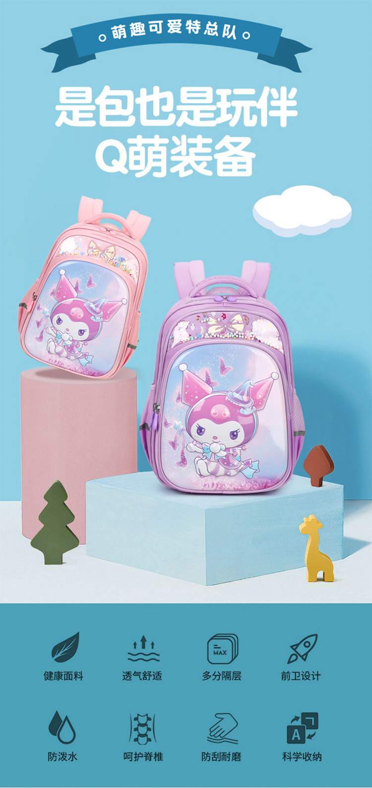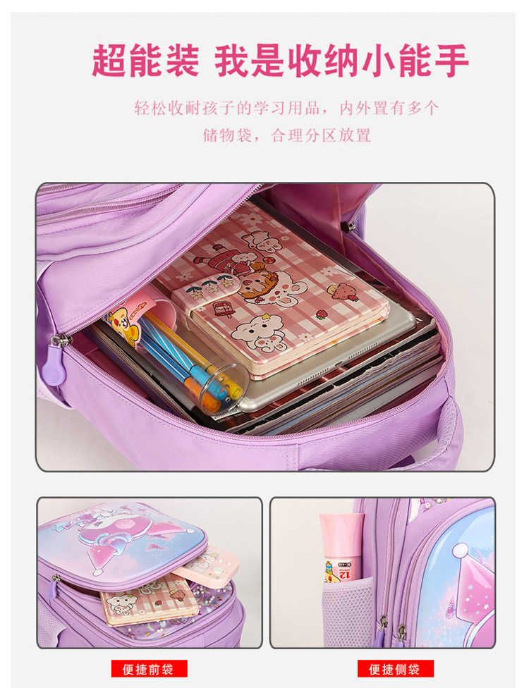 초등학교 학생을위한 새로운 만화 스쿨 백 1-4 학년 소녀 배낭 어린이를위한 능선 보호 트렌디를위한 대용량 경량 배낭