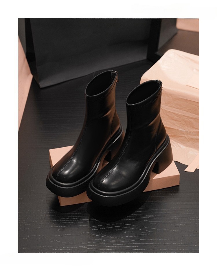 화이트 쇼트 부츠 여성 플랫폼 두꺼운 바닥 작은 높이 증가 스트레치 얇은 부츠 슬림 룩 마틴 부츠