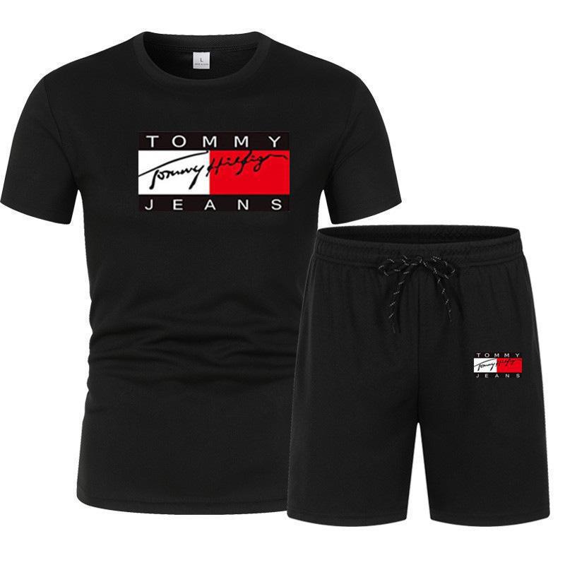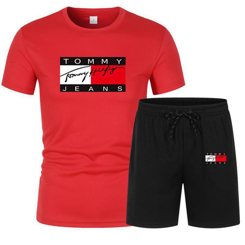 2024 여름 핫 세일 남자 레저 스포츠 세트 메쉬 통기성 플러스 사이즈 반바지 티셔츠 2 세트