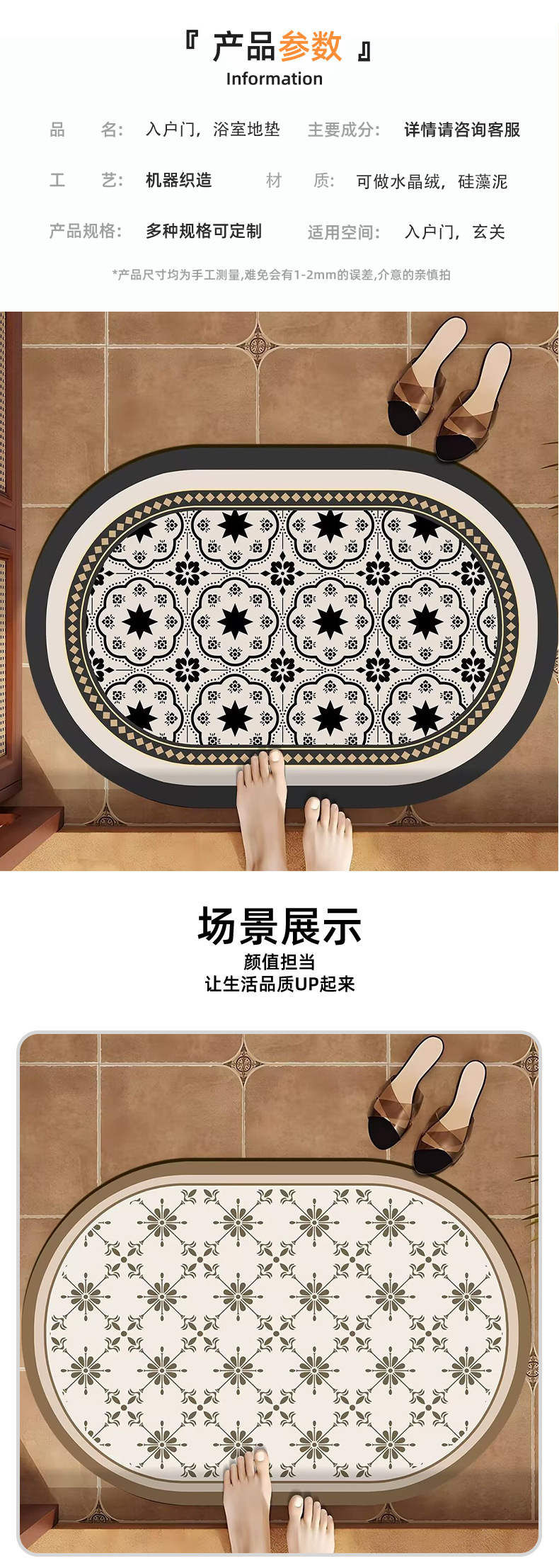 샤오샹풍 규조토 흡수 매트, 맞춤형 사이즈 현관 매트, 고급스러운 현관 바닥 매트, 욕실 바닥 매트스토어 가기