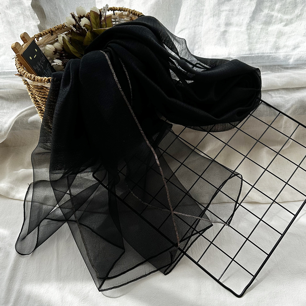 아마존 국경 간 재고 실크 스카프 여성의 새로운 여름 선 스크린 고급 목도리 실크 골드 스레드 스카프스토어 가기