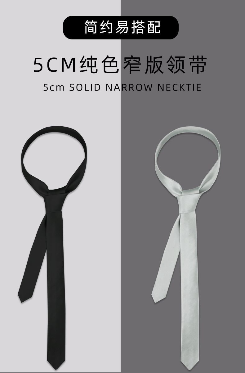 한국 5cm 좁은 작은 넥타이 블랙 실버 남녀 학생 지퍼 캐주얼 패션 솔리드 컬러
