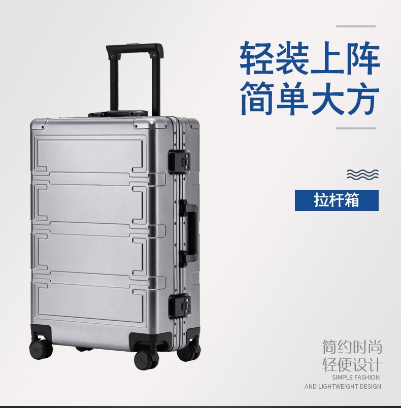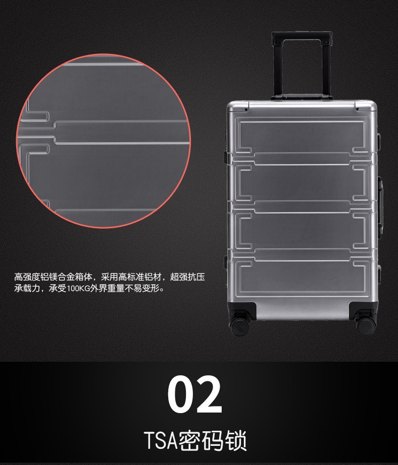 국경을 넘는 20inch 알루미늄-마그네슘 합금 여행가방 제조업체 도매 24인치 회전 바퀴 여행가방 무료 배송 도난 방지 잠금장치 고급스러운 스타일스토어 가기
