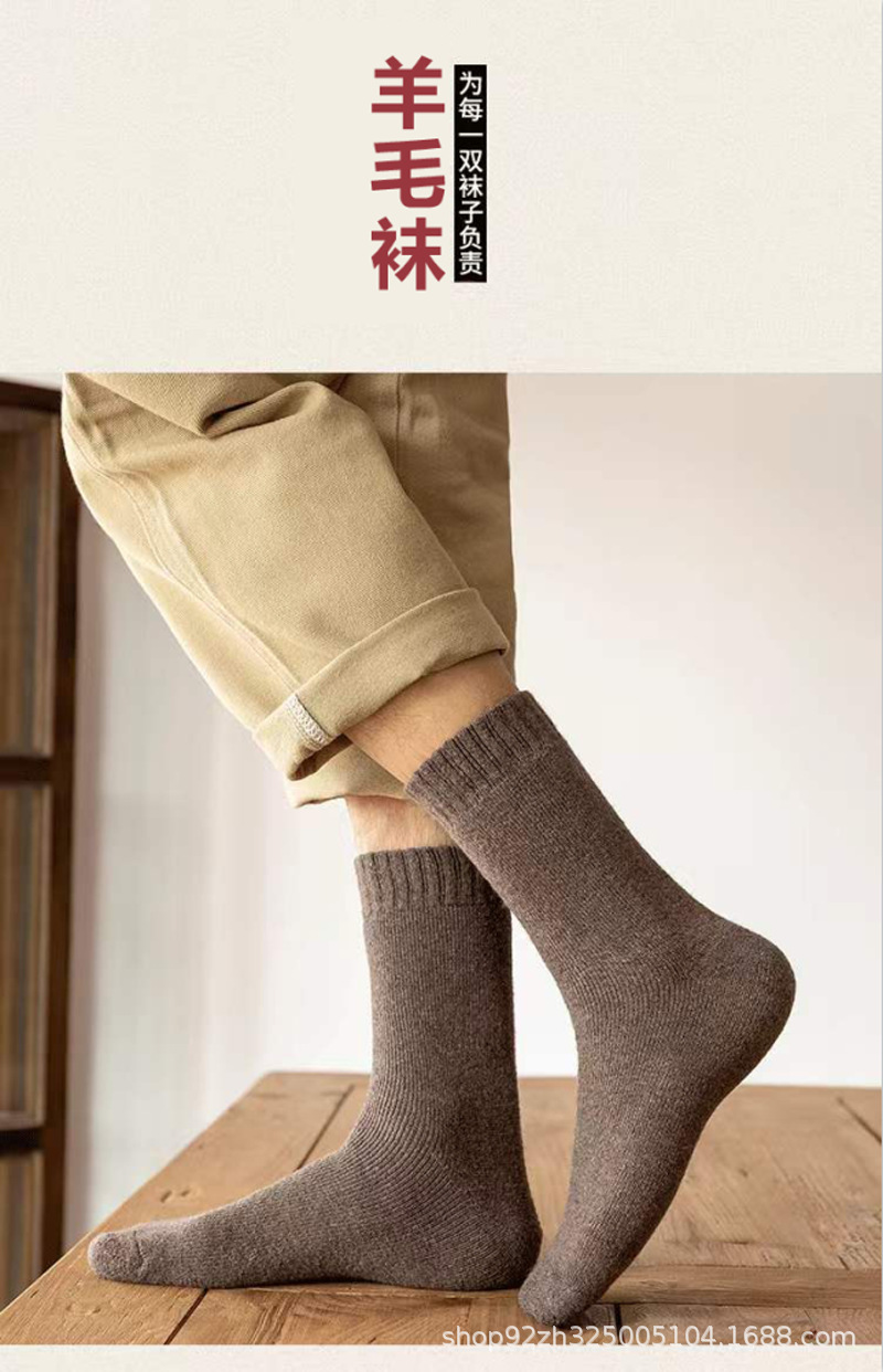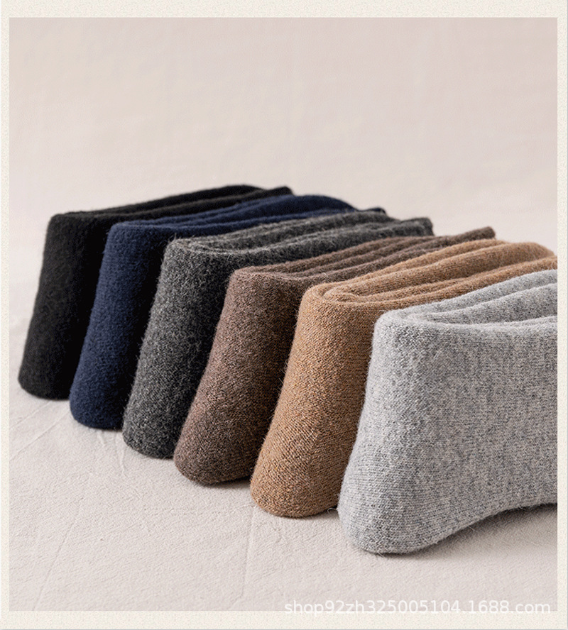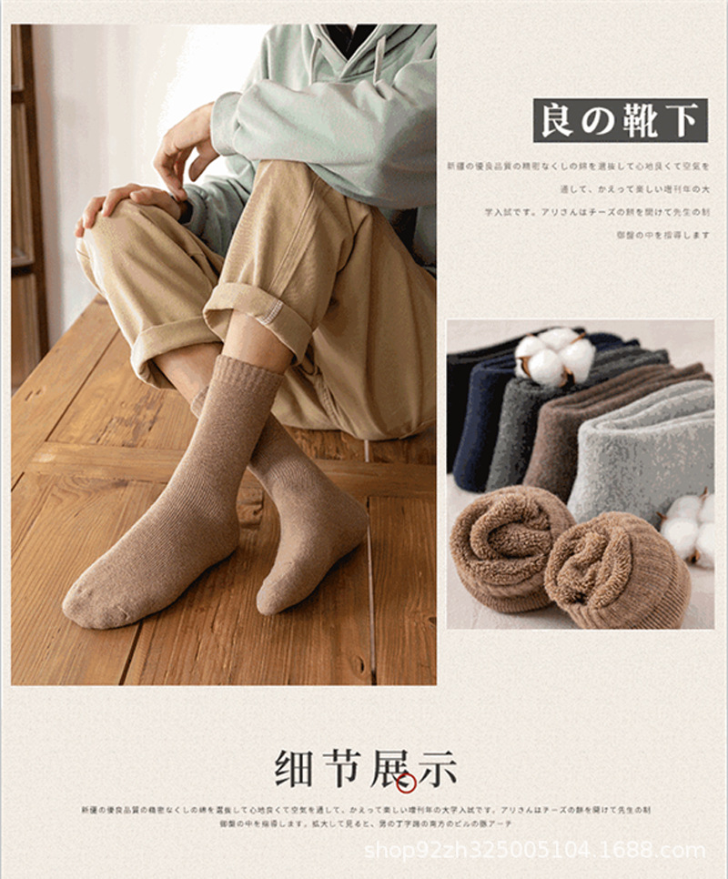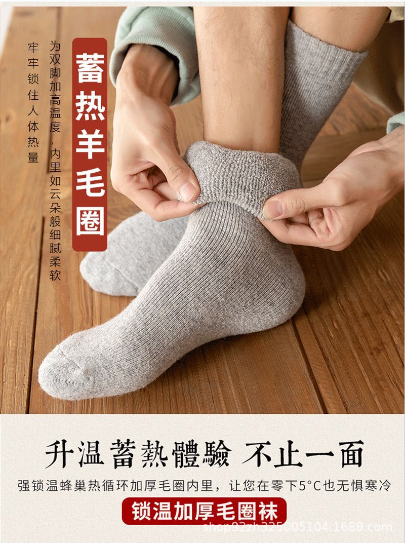 가을과 겨울 두꺼운 양모 양말 중간 튜브 슈퍼 두꺼운 수건 바닥 따뜻한 야외 추가 두꺼운 남성 양모 양말스토어 가기