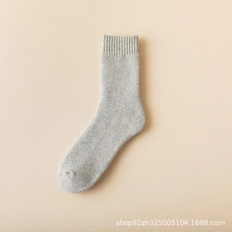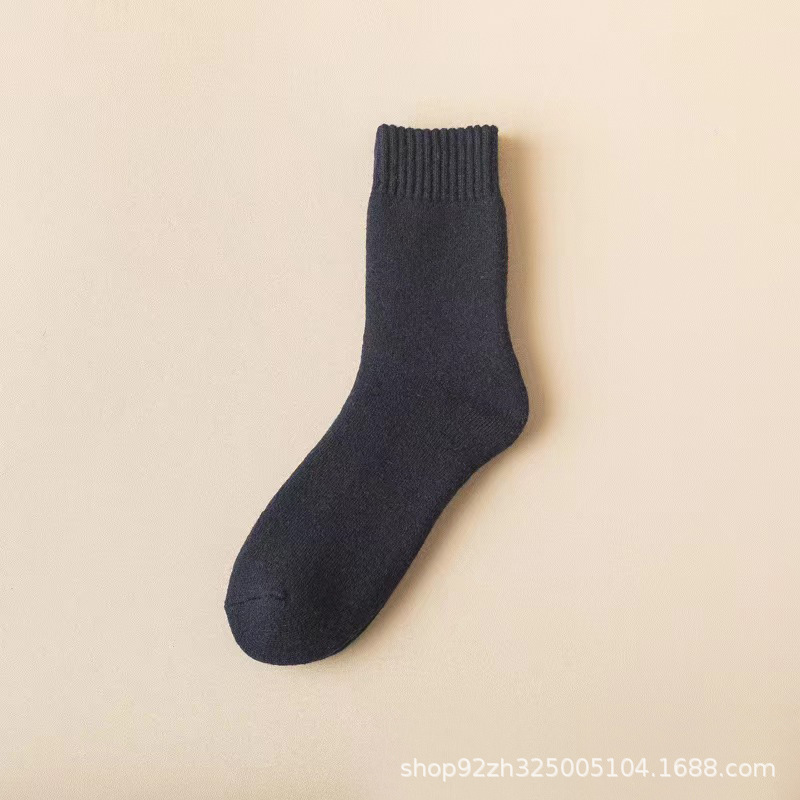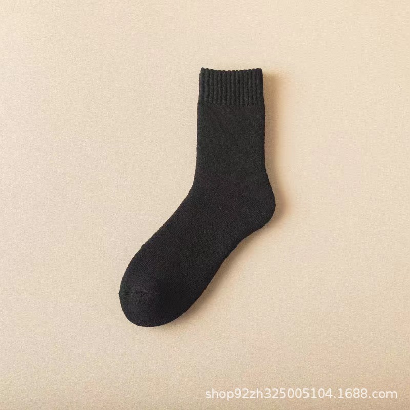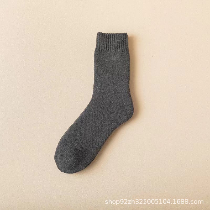 가을과 겨울 두꺼운 양모 양말 중간 튜브 슈퍼 두꺼운 수건 바닥 따뜻한 야외 추가 두꺼운 남성 양모 양말