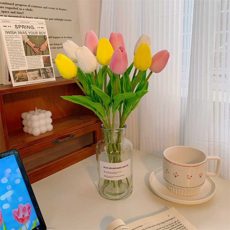 Ins 꽃다발 튤립 거실 테이블 케이크 장식 가짜 꽃 배열 실크 꽃 장식 말린 꽃 장식