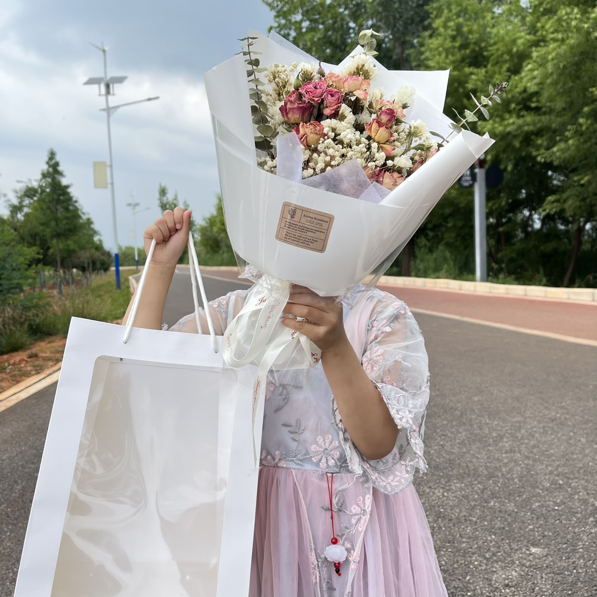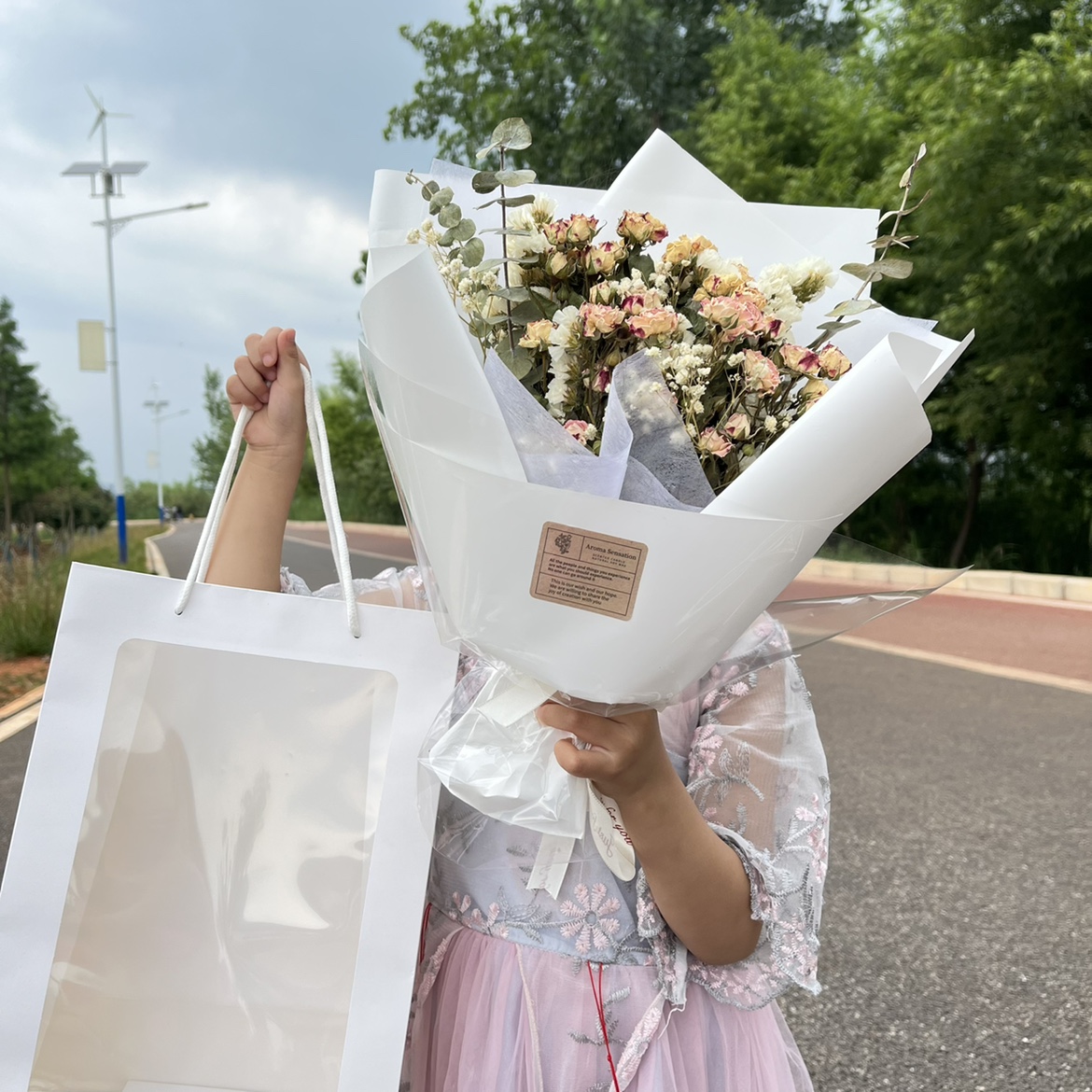 • 윈도우 스타일의 우아한 화이트 핑크 로즈 드라이플라워 백