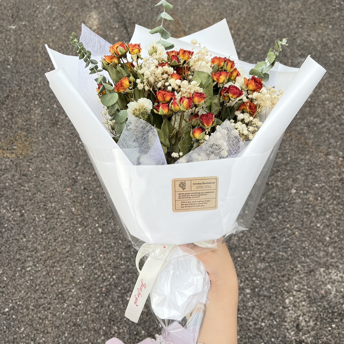 • 우아한 화이트 오렌지 로즈 드라이플라워 백
