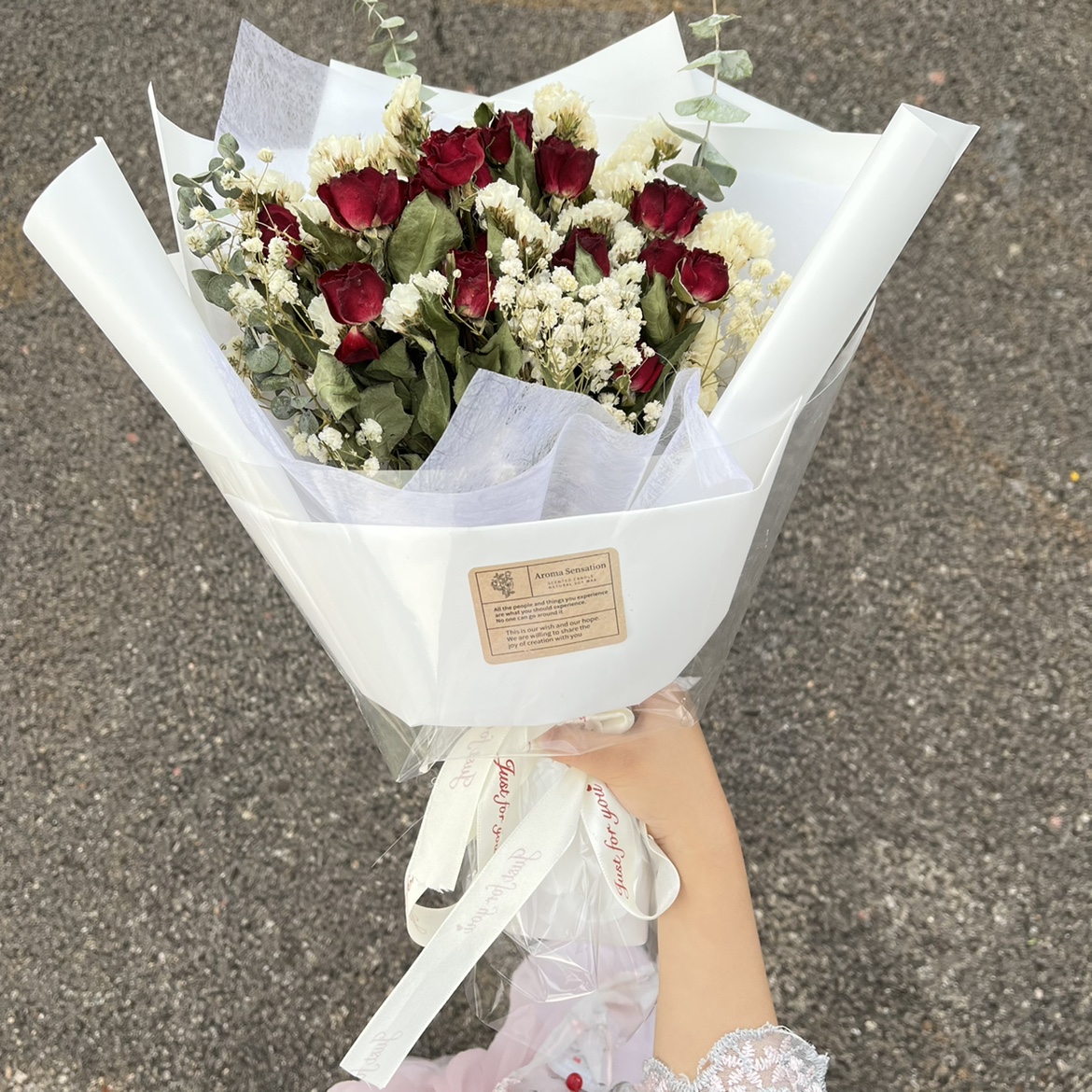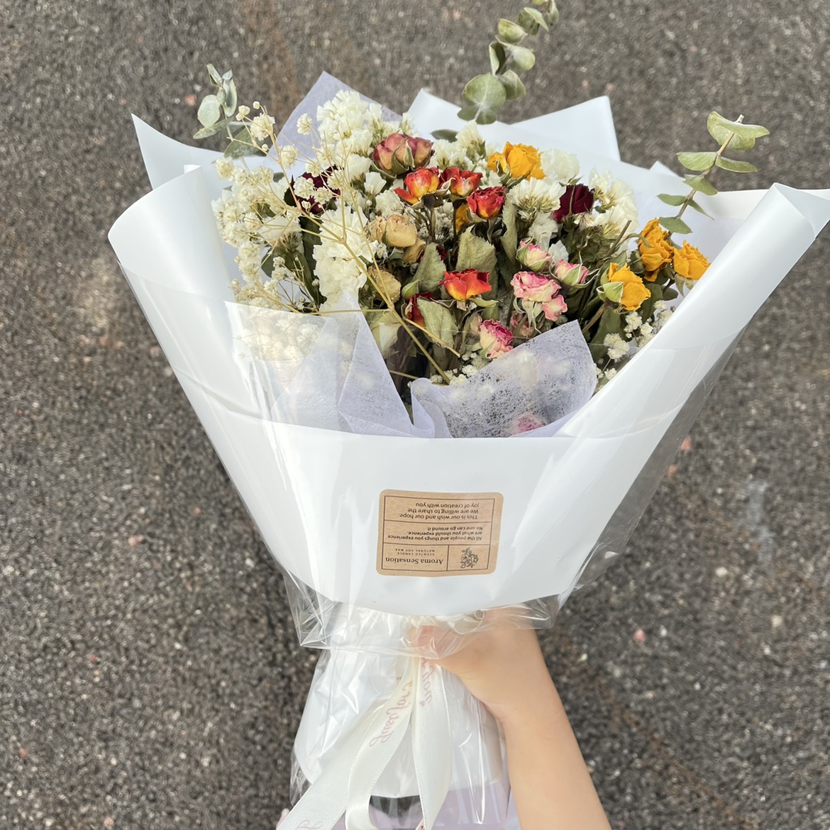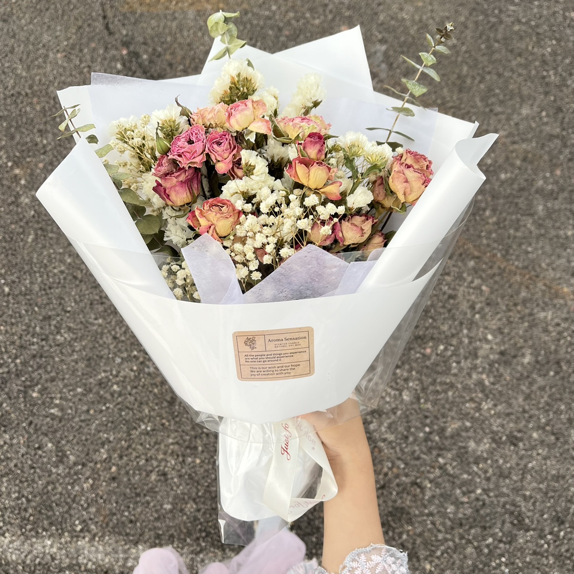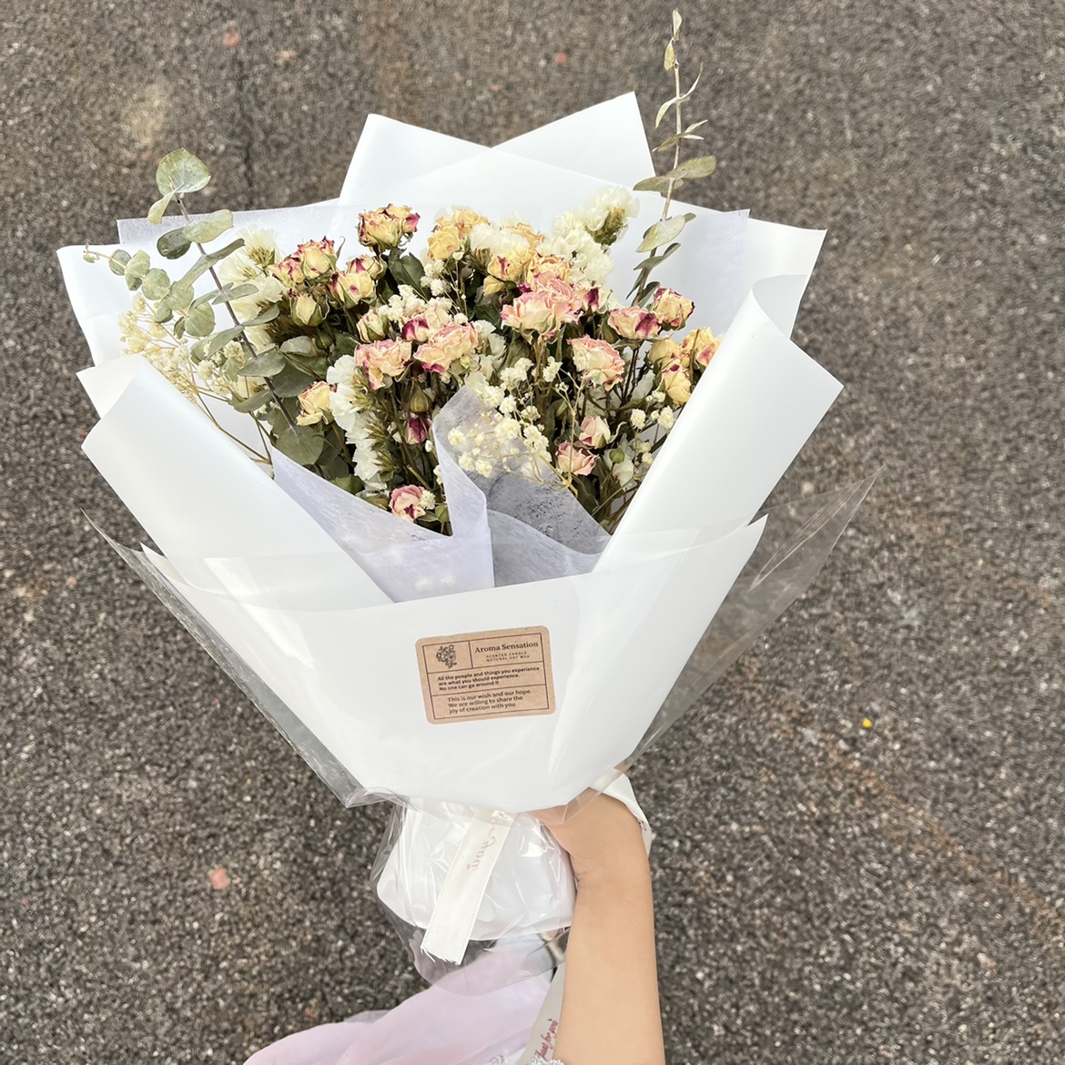 • 우아한 화이트 혼합 컬러 로즈 드라이플라워 백