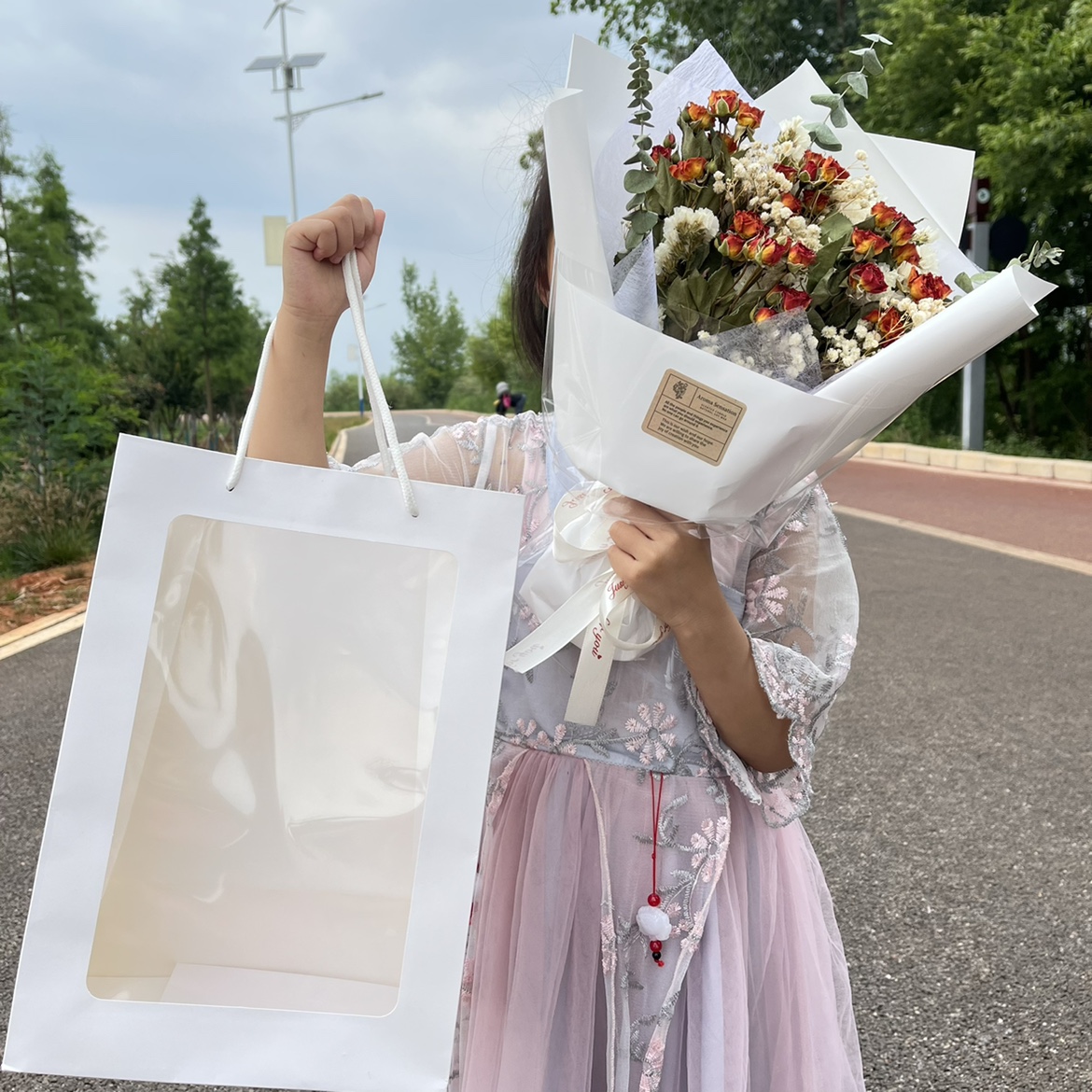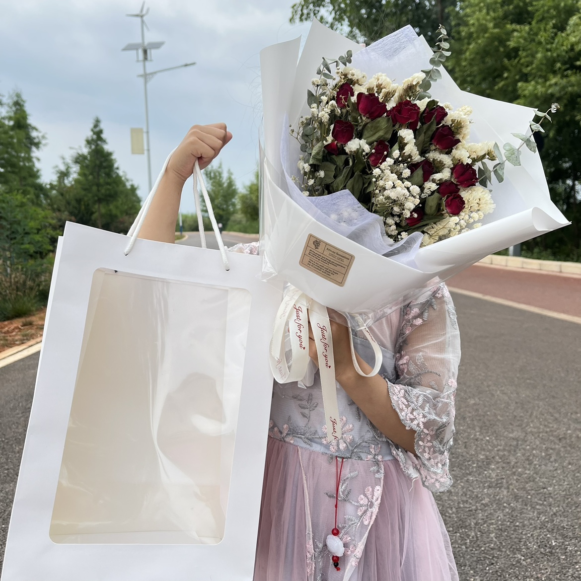 • 윈도우 스타일의 우아한 화이트 레오 로즈 드라이플라워 백
