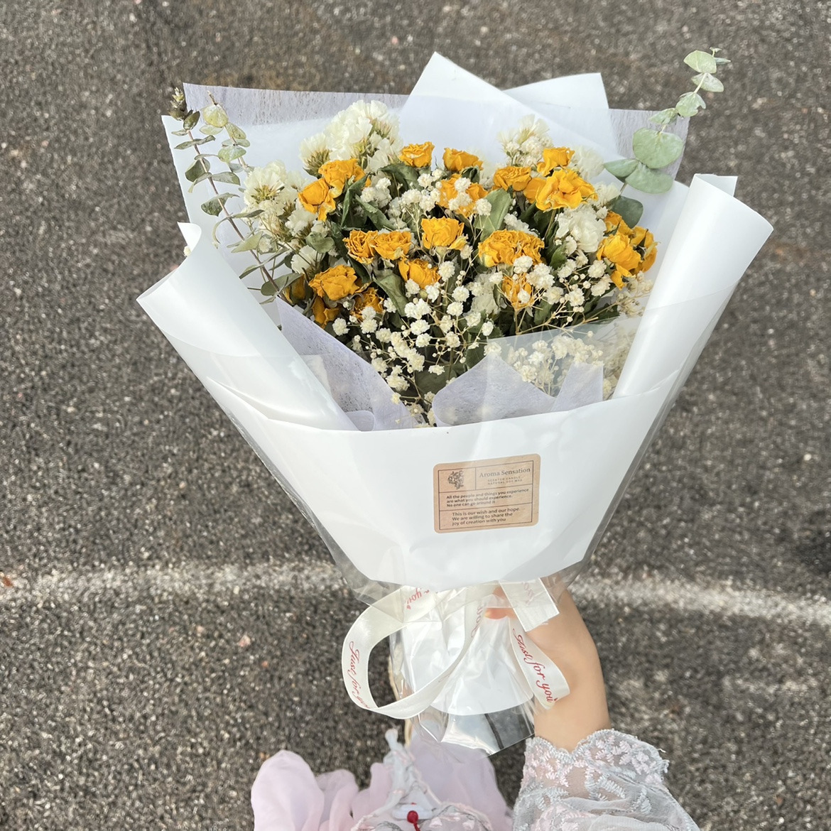 • 우아한 흰색과 노란색 장미-드라이 플라워 백