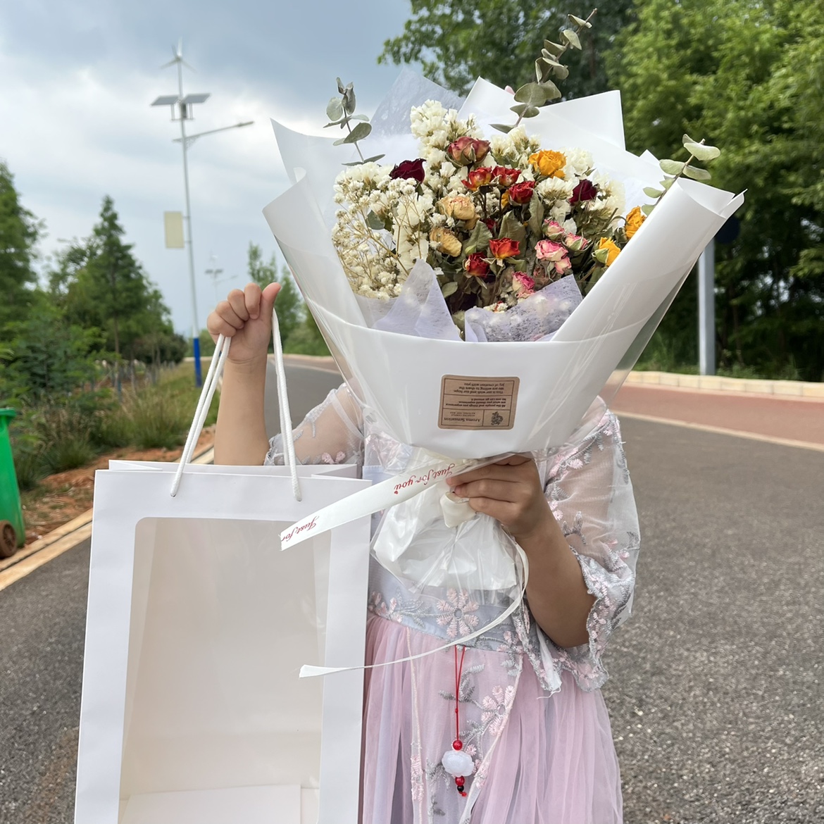 • 윈도우 스타일의 우아한 화이트 혼합 컬러 장미-드라이 플라워 백