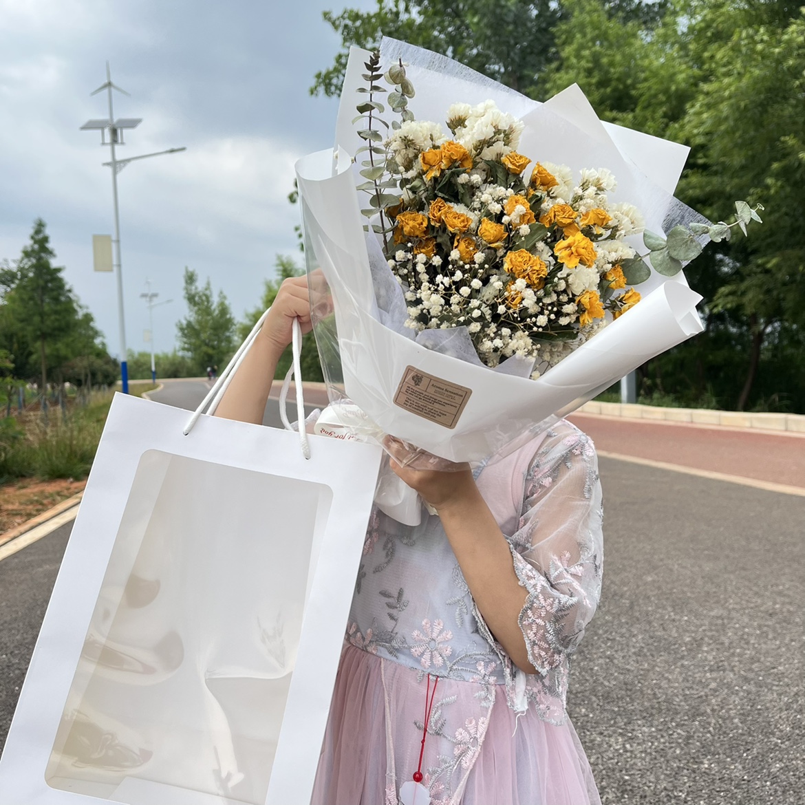 • 윈도우 스타일의 우아한 화이트 오렌지 로즈 드라이플라워 백