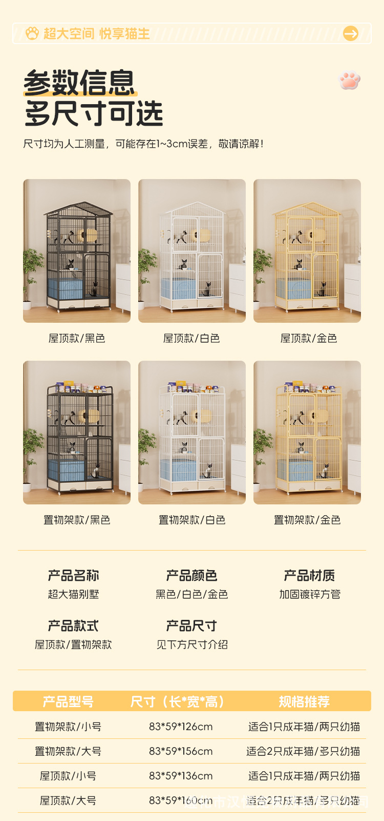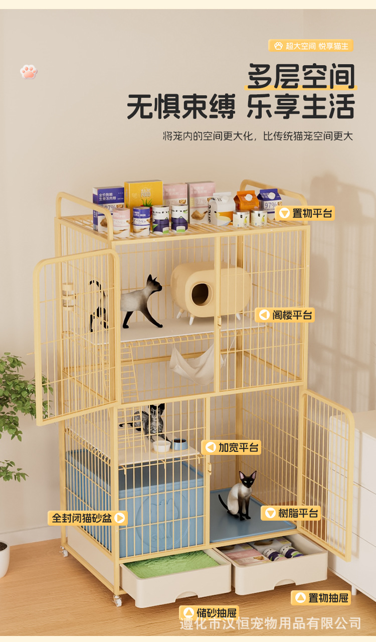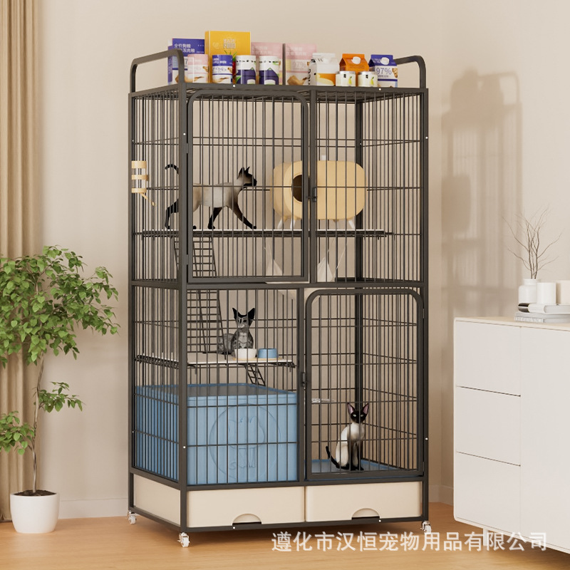 고양이 케이지 가정용 실내 2 층 및 3 층 고양이 빌라 큰 공간 고양이 집 고양이 케이지 고양이 화장실 통합 고양이 캐비닛 고양이 집스토어 가기