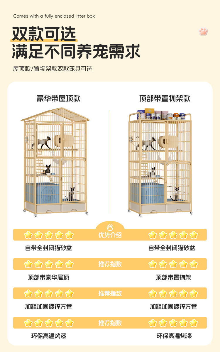 • 황금색 - 뾰족한 작은 집 모델 83*59*136cm - (일치하는 고양이 배변 상자 보관 캐비닛 포함)