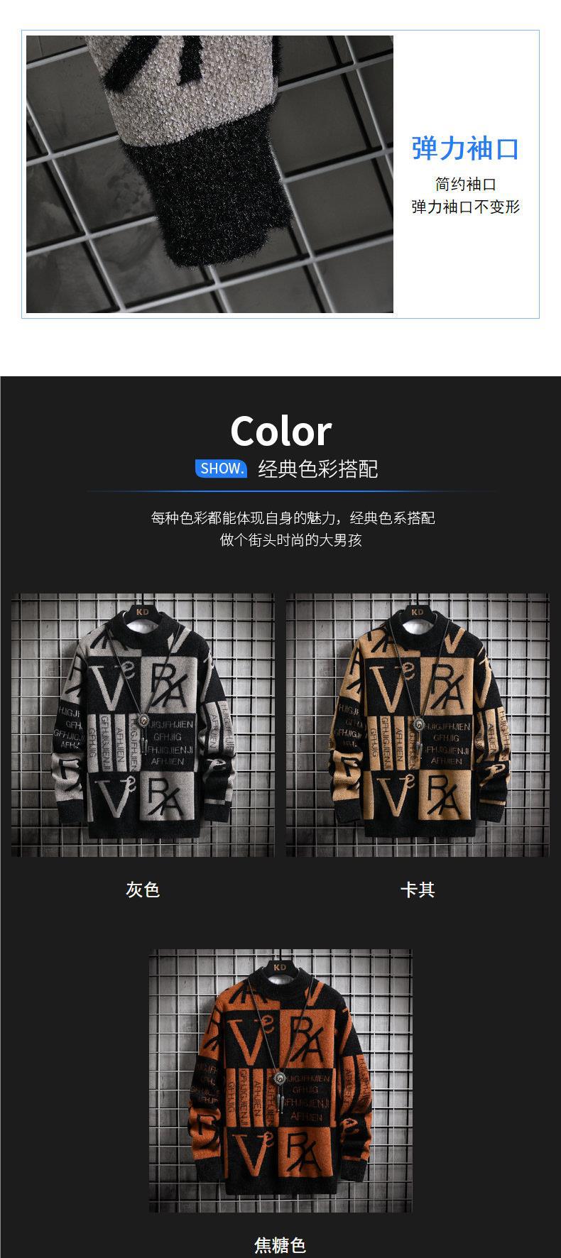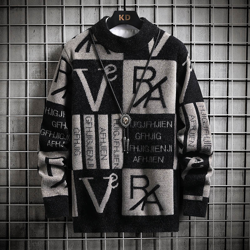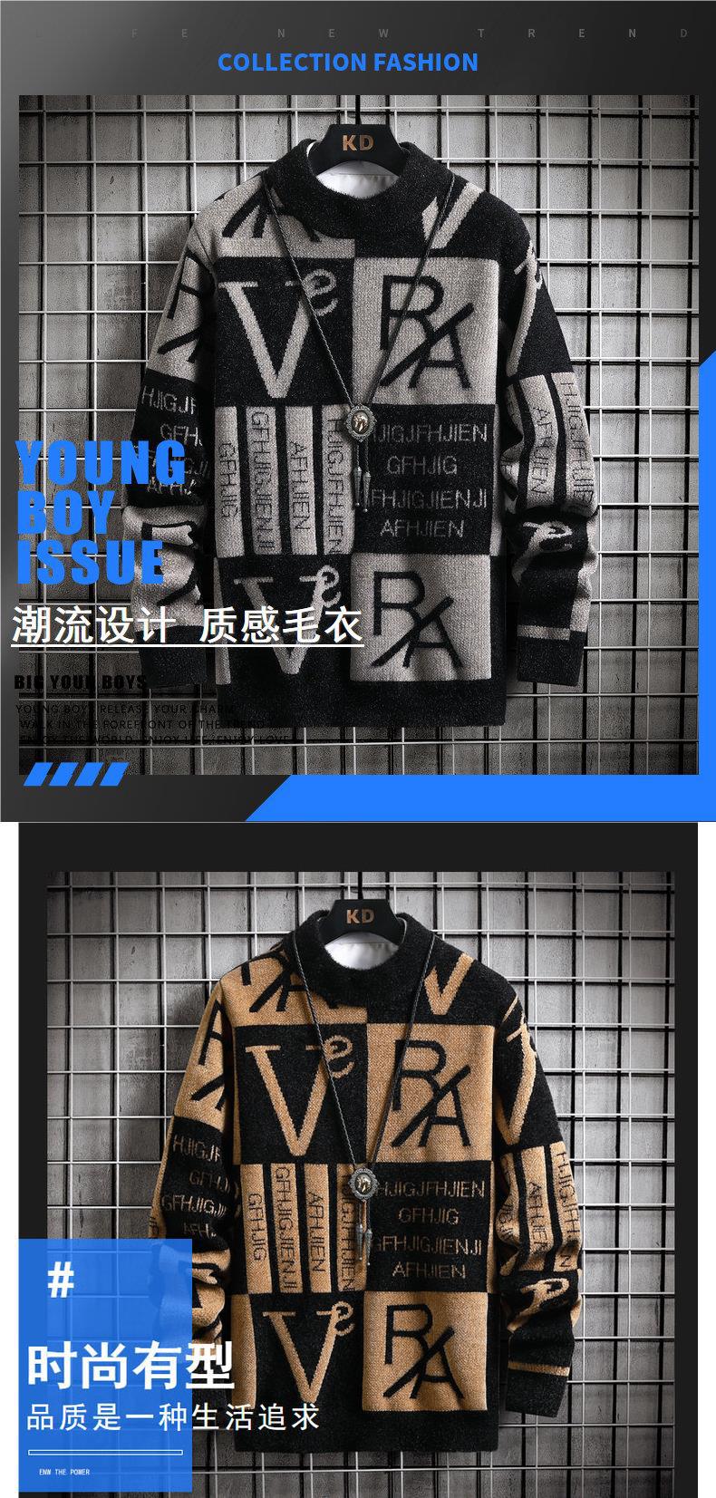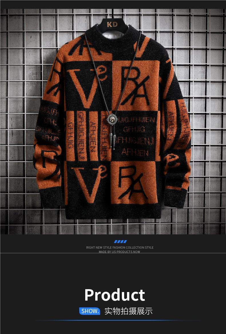 콘트라스트 컬러 스트라이프 스웨터 남성용 가을 겨울 패션 브랜드 라운드 넥 긴팔베이스 셔츠 청소년 스웨터 따뜻한 스웨터 남성용 스웨터