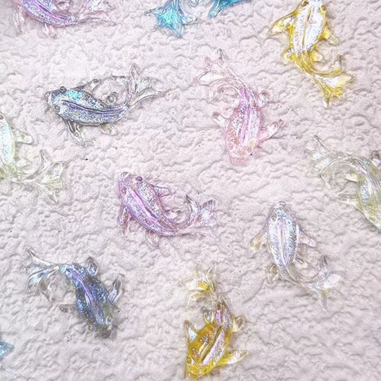 새로운 네일 아트 쥬얼리 100개, 다채로운 크리스탈, 작은 돌고래, 얼음 투명 입체 수지 금붕어 네일 장식 다이아몬드스토어 가기