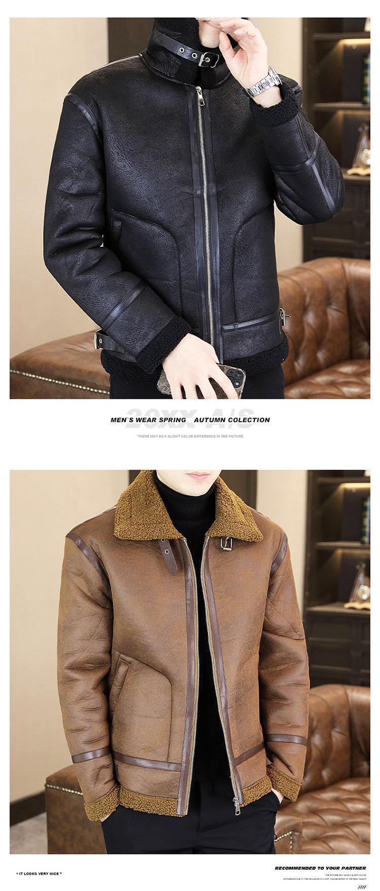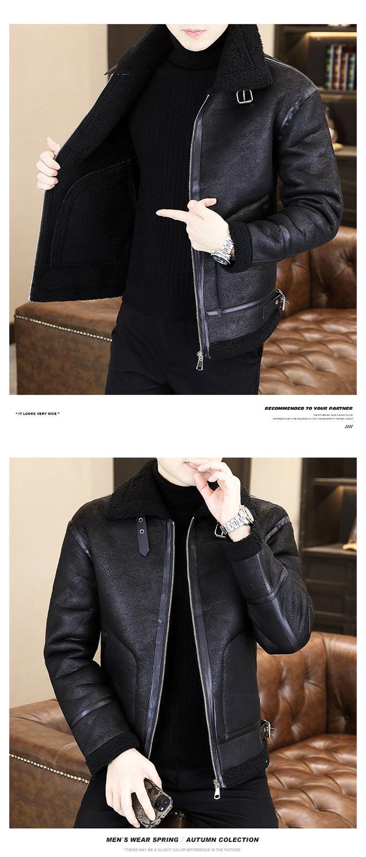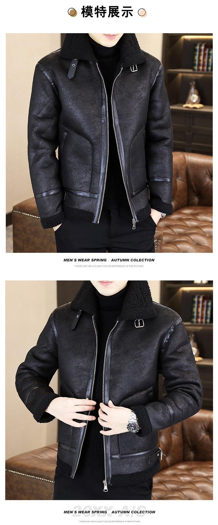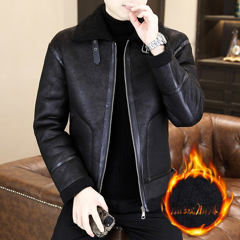 모피 원 2024 가을과 겨울 새로운 PU 가죽 의류 남성용 잘 생긴 슬림 핏 바이커 기모 재킷 탑 코트