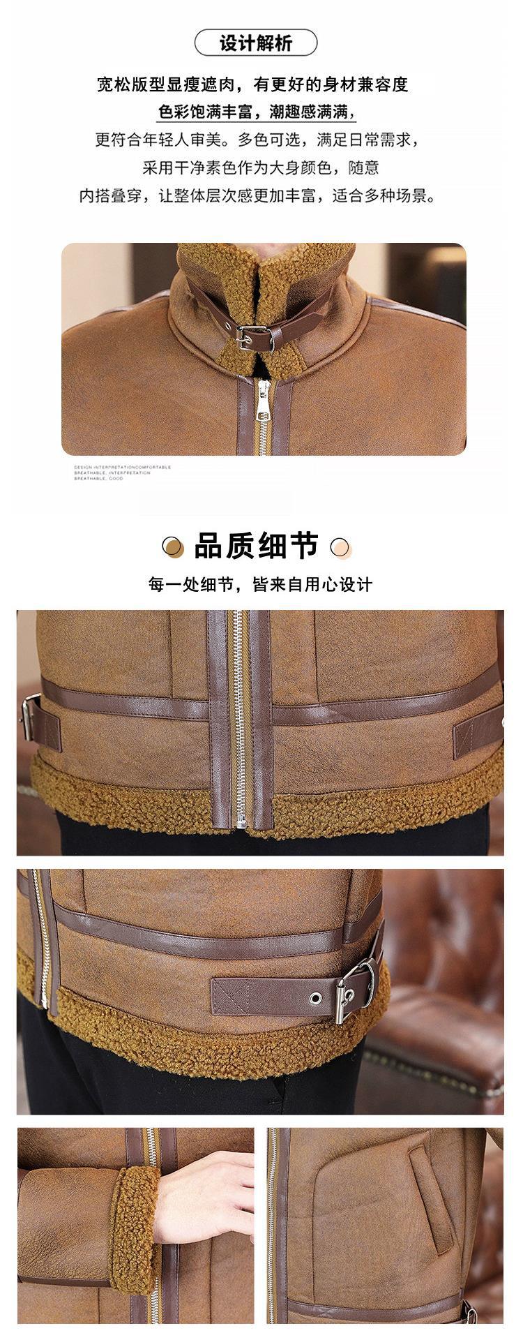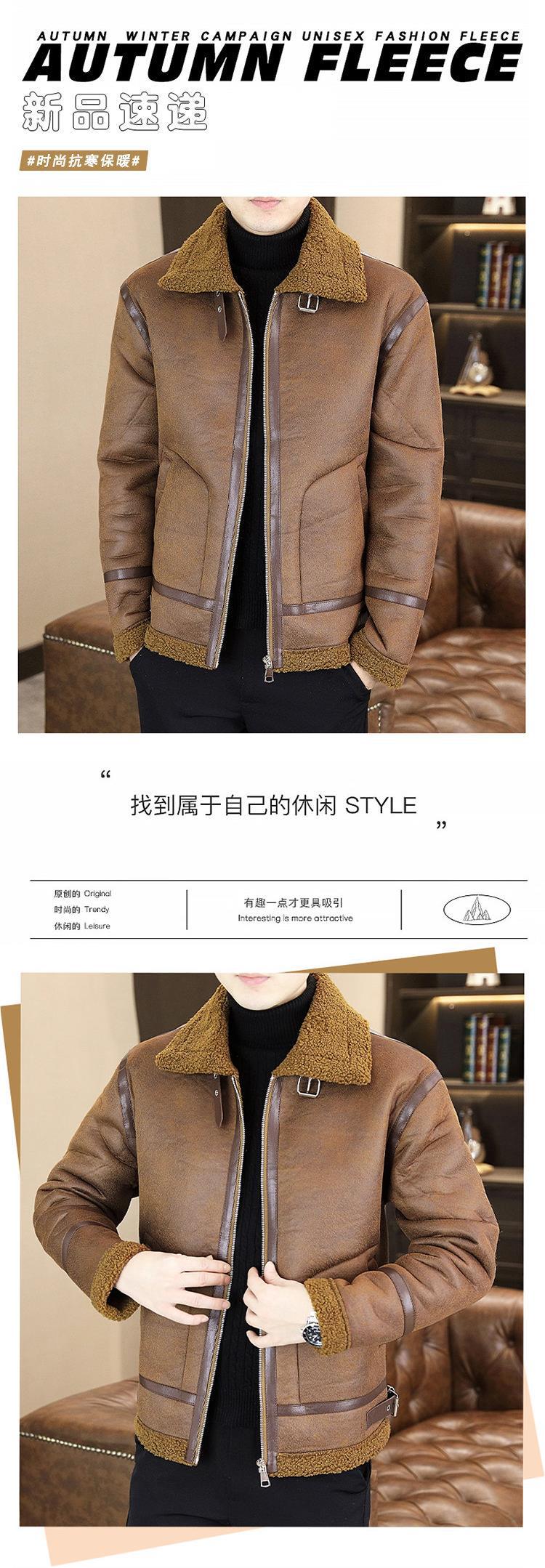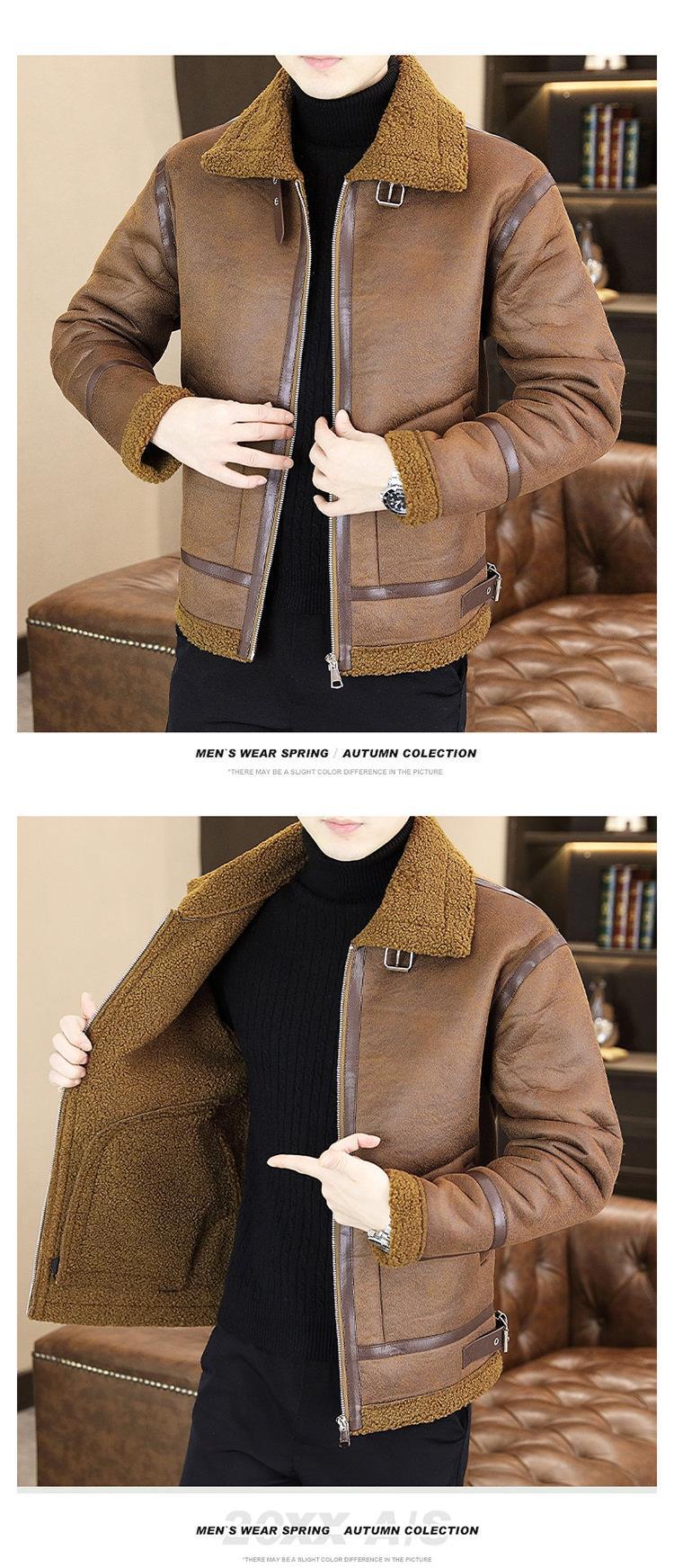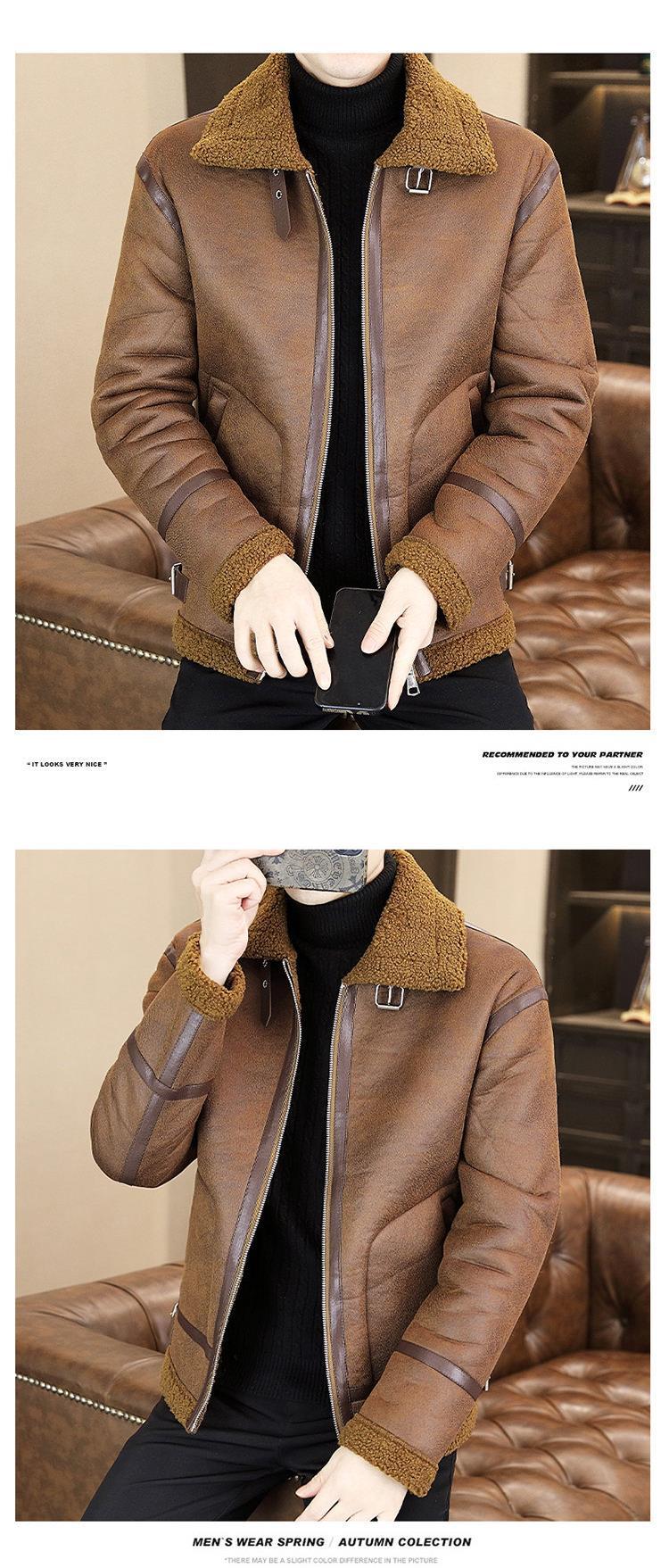 모피 원 2024 가을과 겨울 새로운 PU 가죽 의류 남성용 잘 생긴 슬림 핏 바이커 기모 재킷 탑 코트