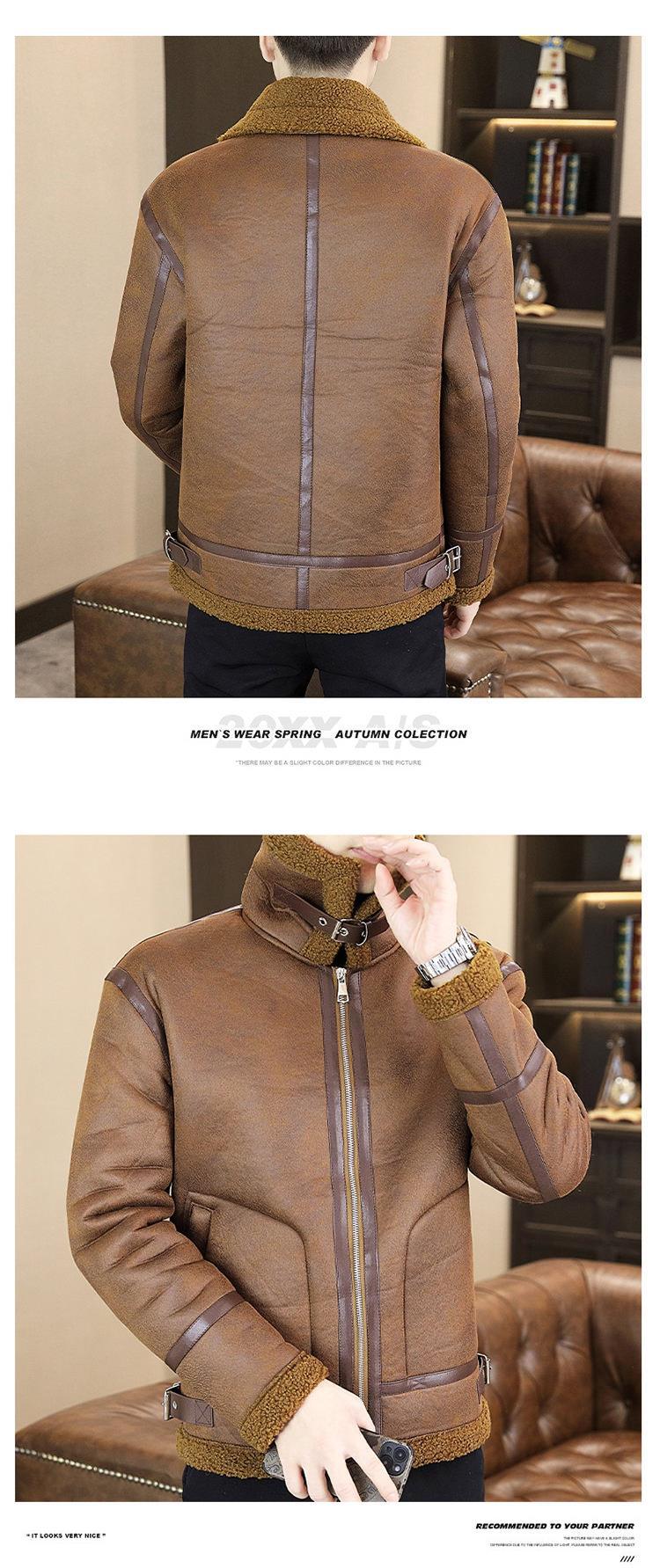 모피 원 2024 가을과 겨울 새로운 PU 가죽 의류 남성용 잘 생긴 슬림 핏 바이커 기모 재킷 탑 코트스토어 가기