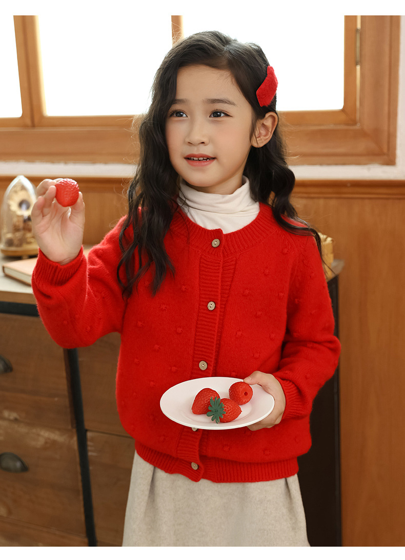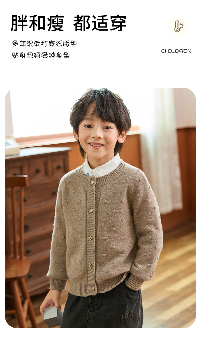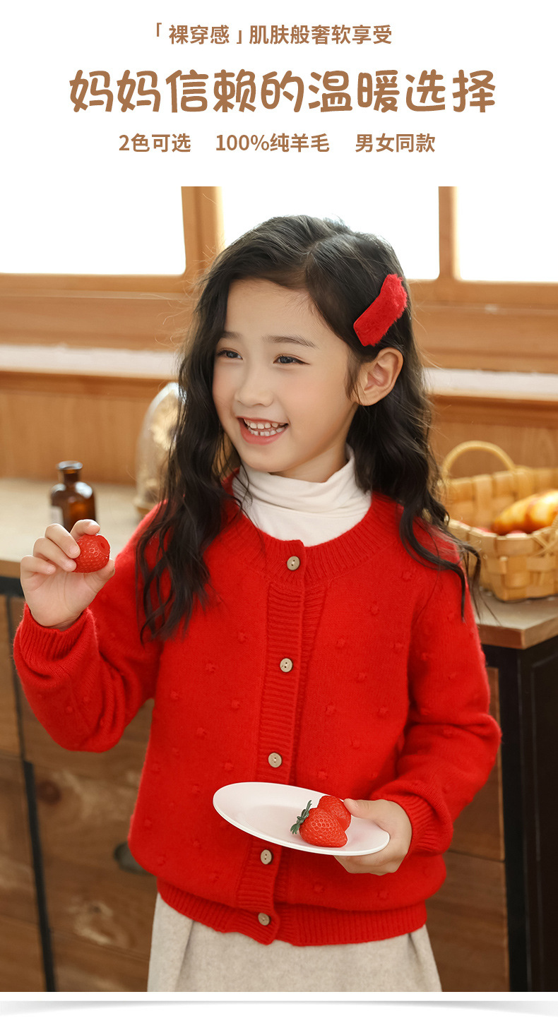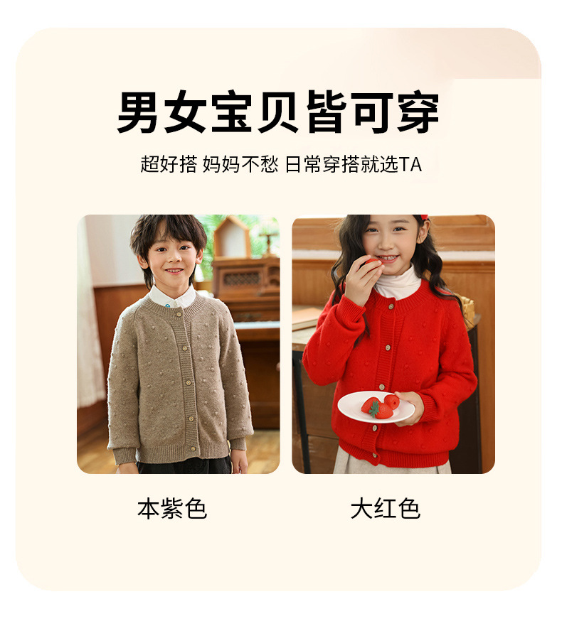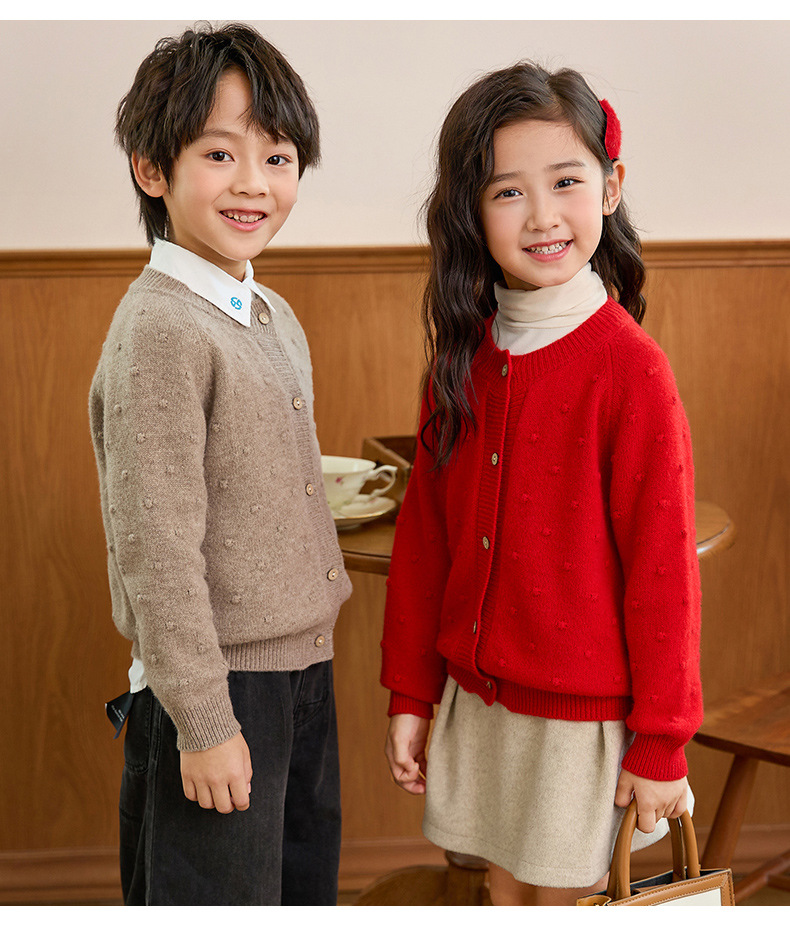 어린이 7 핀 두꺼운 순수 양모 팝콘 카디건 재킷 캐주얼 솔리드 컬러 의상 남녀 사이즈 어린이 겨울 스웨터