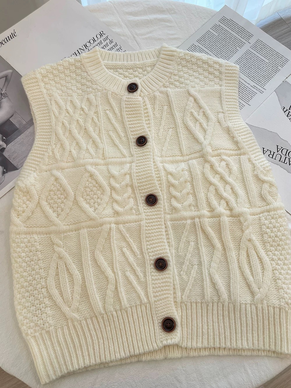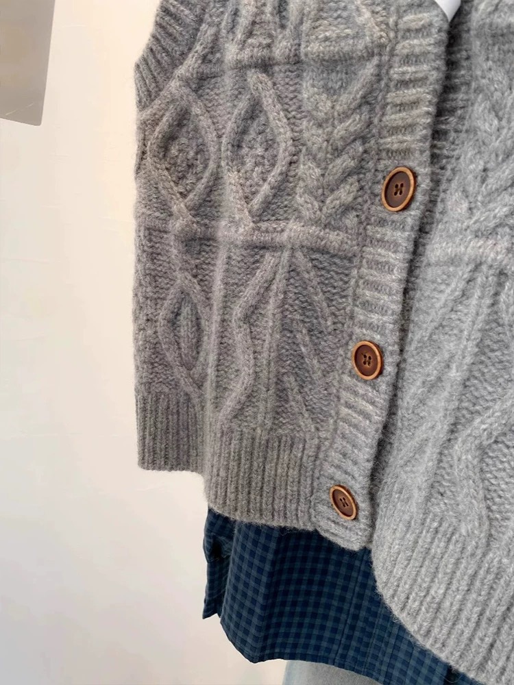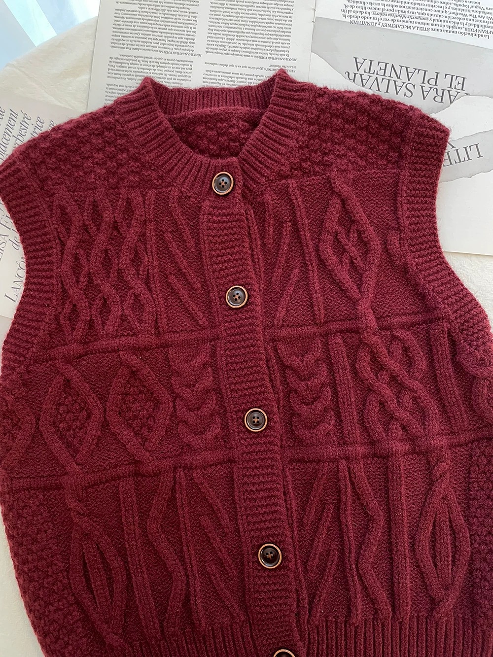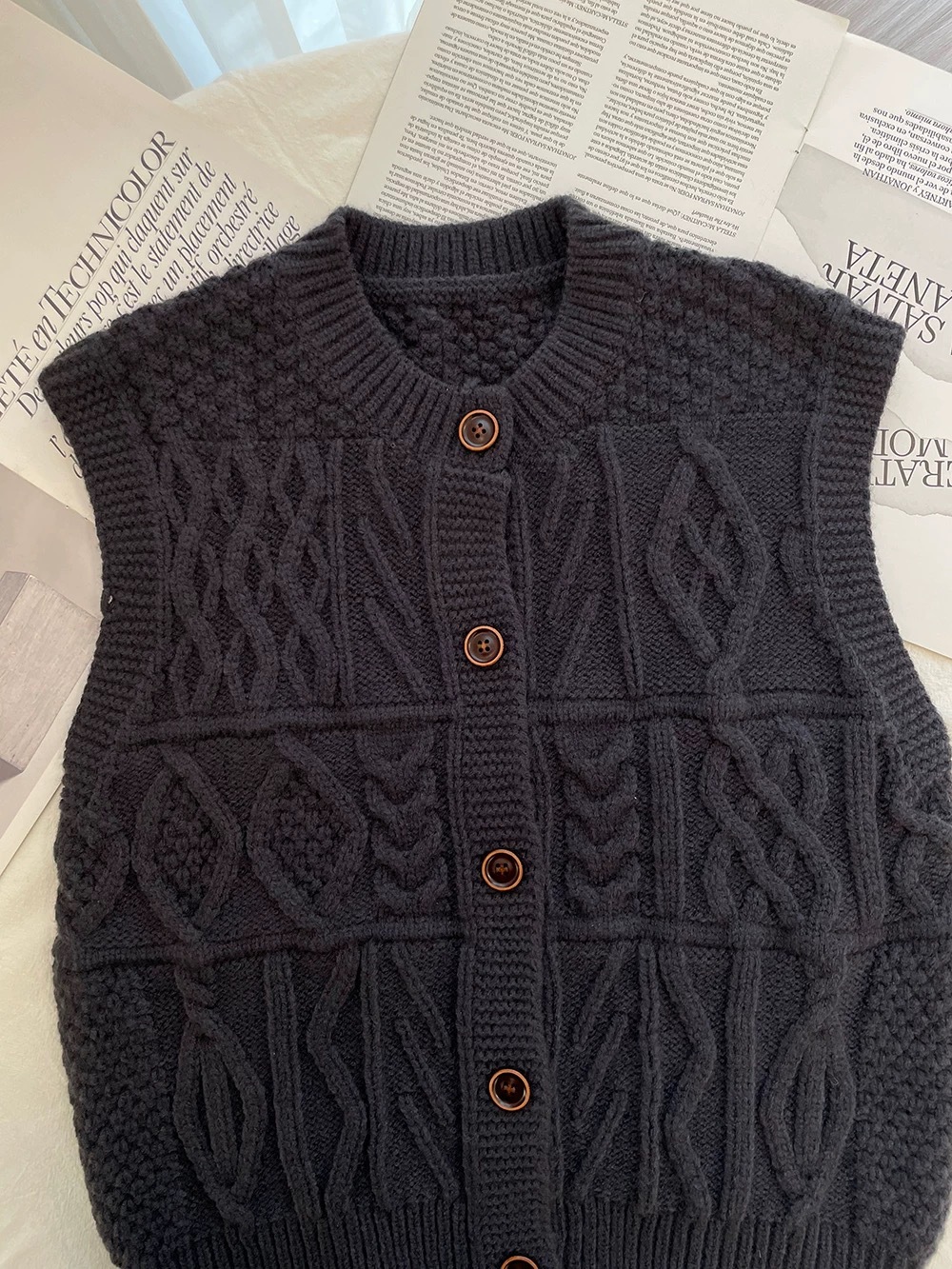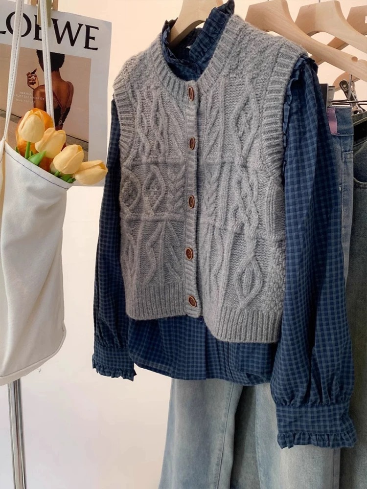 프렌치 레트로 스타일 루즈핏 레이어드 니트 조끼 여성용 회색 스웨터 민소매 봄 가을 상의스토어 가기